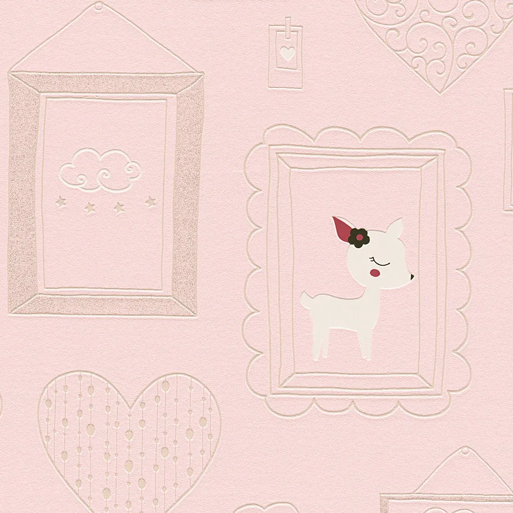 Tapeta 36991-2 Boys & Girls 6 AS Creation brokatowa zwierzęca do pokoju dziewczynki – róż, biel
