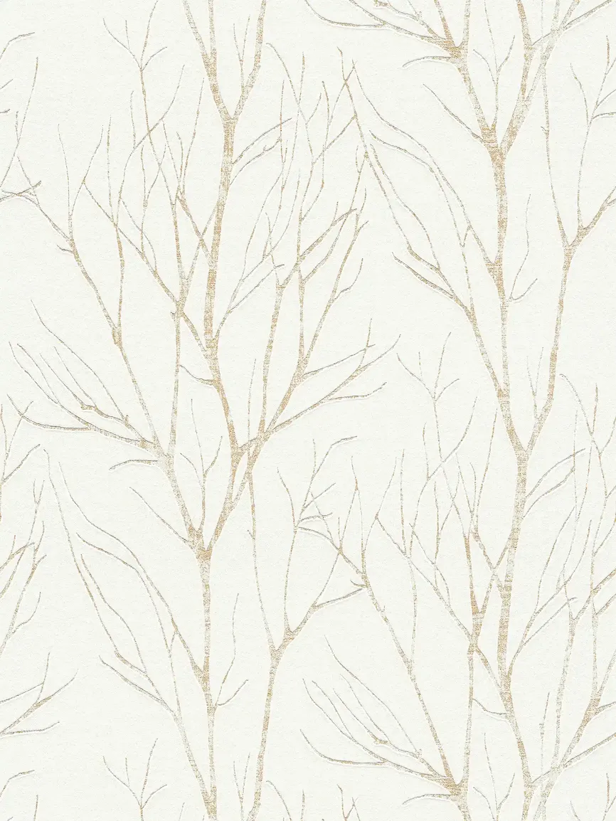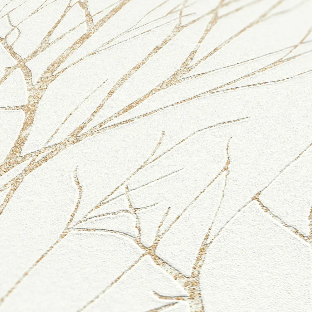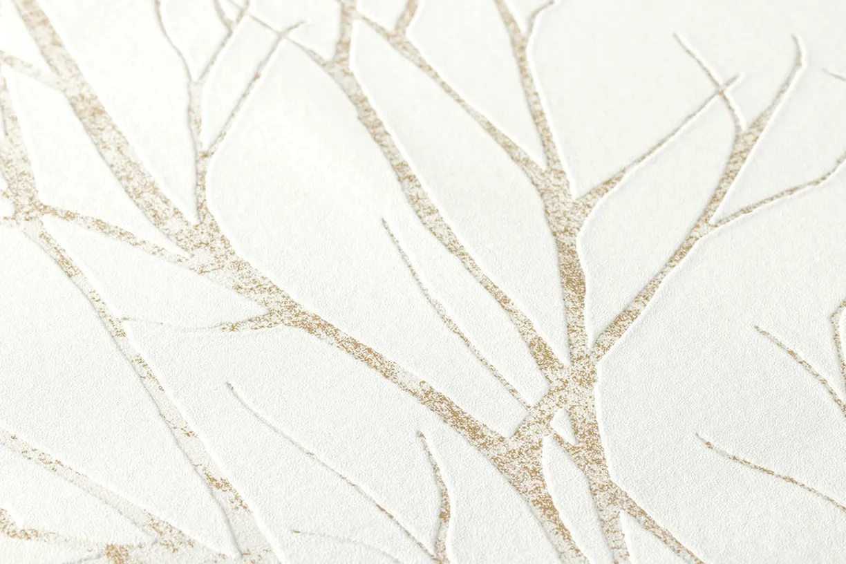 Tapeta 37260-3 Blooming AS Creation modny motyw gałęzi biała ze złotem