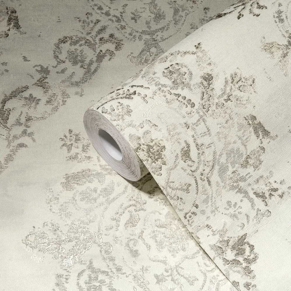 Tapeta 38707-2 My Home My Spa AS Creation tapeta ozdobna o strukturze lnu w stylu vintage – metaliczna, kremowa, beżowa