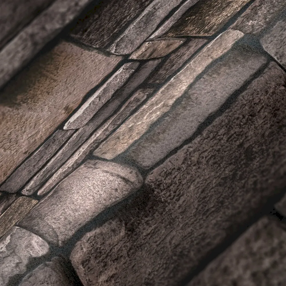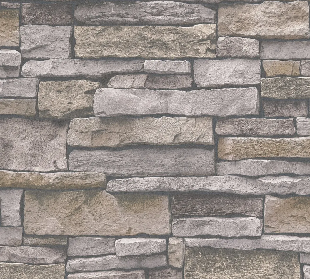 Tapeta 38813-3 Terra AS Creation Tapeta motyw muru z kamienia z efektem 3D - beż, brąz