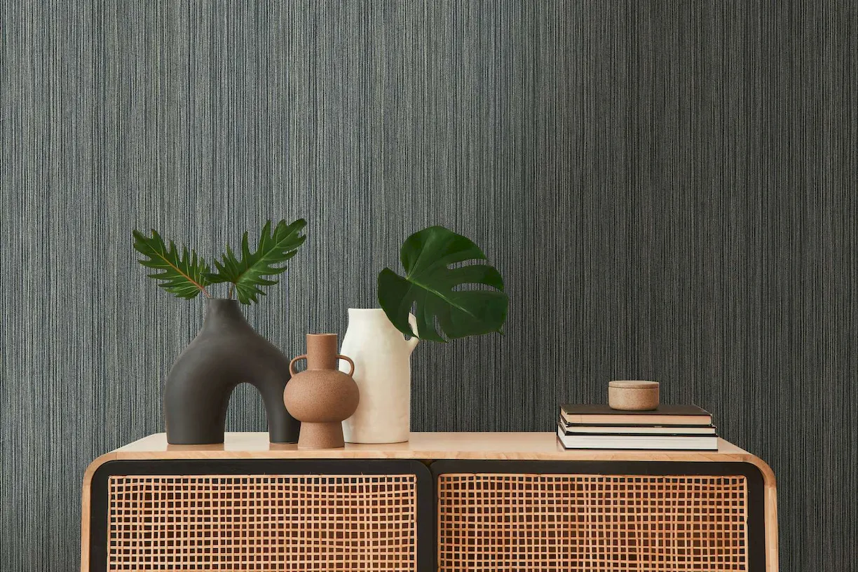 Tapeta 38819-1 THE BoS AS Creation to doskonały wybór dla osób, które pragną wprowadzić do swojego wnętrza nowoczesny i elegancki akcent. Jej unikalny wzór tekstylny w połączeniu z efektem linii nadaje przestrzeni wyjątkowego charakteru, tworząc atmosferę luksusu i wyrafinowania. Czarna kolorystyka sprawia, że tapeta doskonale komponuje się z różnorodnymi stylami aranżacyjnymi, od minimalistycznych po bardziej klasyczne.