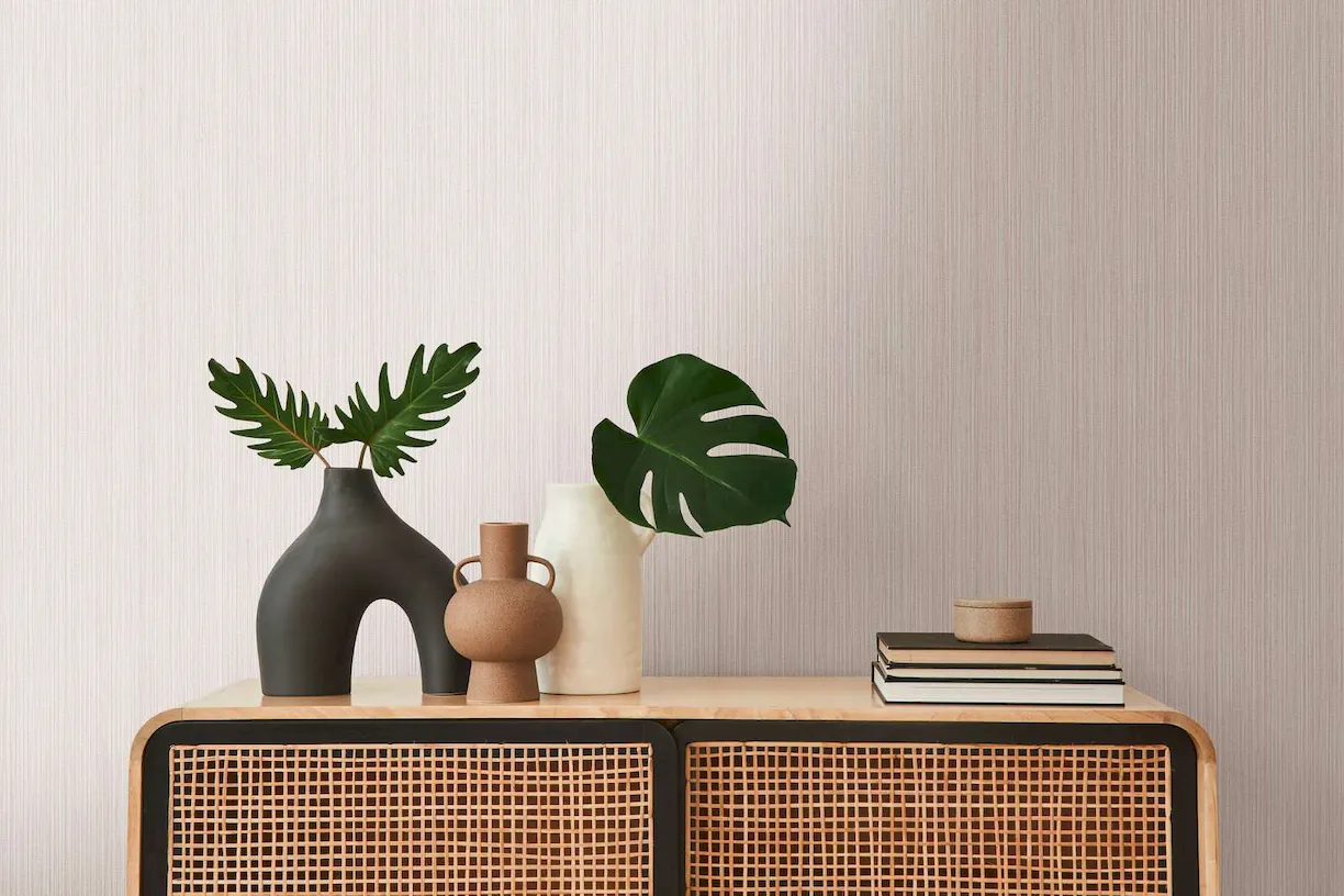 Metaliczny połysk tapety przyciąga wzrok i nadaje przestrzeni wyjątkowego blasku. Dzięki temu, nawet w mniej oświetlonych pomieszczeniach, tapeta emanuje subtelnym światłem, tworząc przytulną atmosferę. Fioletowe i szare odcienie harmonijnie współgrają ze sobą, co sprawia, że tapeta jest niezwykle uniwersalna i łatwa do zestawienia z różnorodnymi dodatkami.