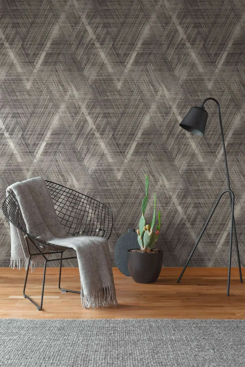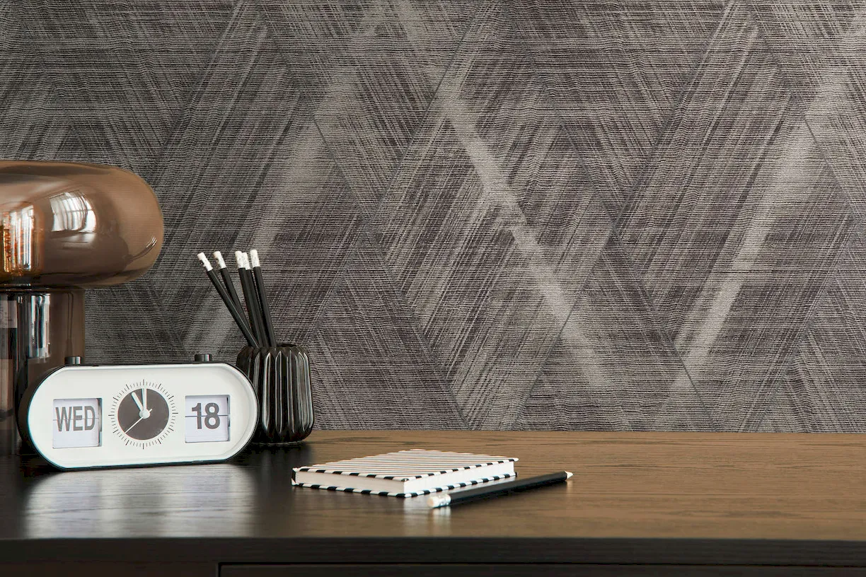 Romby na tapecie tworzą subtelny, ale jednocześnie wyrazisty wzór, który dodaje głębi i dynamiki każdemu pomieszczeniu. Metaliczne akcenty w szarym odcieniu wprowadzają nowoczesny sznyt, sprawiając, że tapeta staje się nie tylko dekoracją, ale również wyrazem indywidualnego stylu. Idealnie nadaje się do salonu, sypialni czy biura, wprowadzając do nich atmosferę luksusu i wyrafinowania.