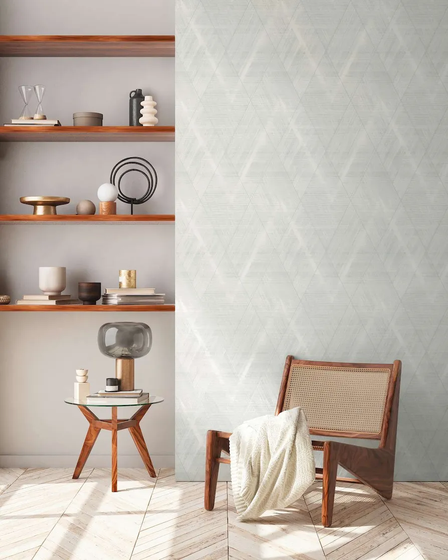 Wzór diamentowy, który zdobi tapetę, wprowadza do wnętrza nutę luksusu i wyrafinowania. Jest to doskonała propozycja dla osób, które cenią sobie oryginalność i chcą wyróżnić swoje wnętrze. Metaliczne wykończenie odbija światło, co sprawia, że pomieszczenie wydaje się jaśniejsze i bardziej przestronne. To idealne rozwiązanie dla tych, którzy pragną optycznie powiększyć swoje wnętrza.