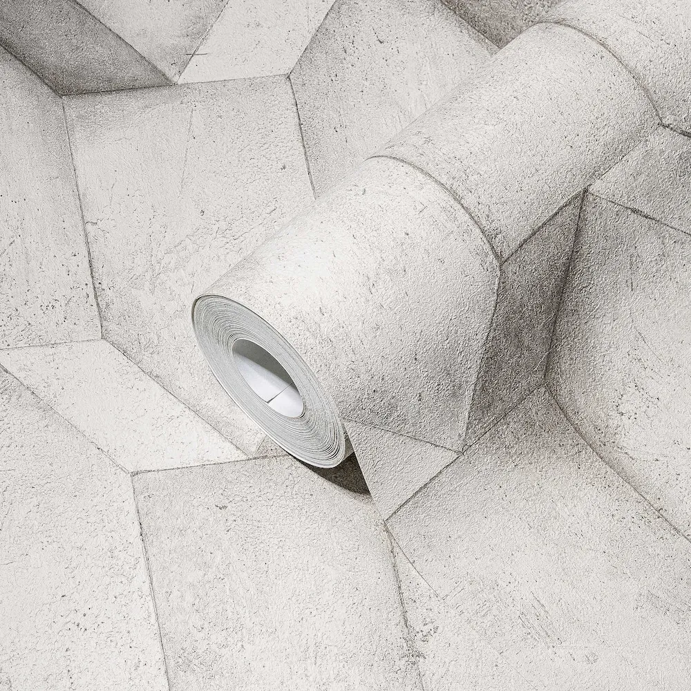 Tapeta 38827-4 THE BoS AS Creation Tapeta teksturowana 3D motyw wapnia - biała, szara