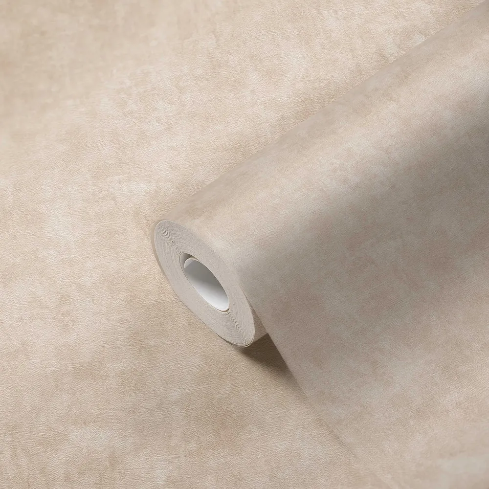 Opis motywu: Motyw tapety przedstawia delikatną, lekko chmurową strukturę, która przypomina subtelną fakturę tynku lub łagodną powierzchnię wapienia. Powierzchnia wydaje się świadomie nieregularna i żywa, nie będąc przy tym nachalną. Paleta kolorów oscyluje w ciepłych, naturalnych odcieniach beżu, które są subtelnie zniuansowane i nadają tłu głębię. Wzór został zaprojektowany w sposób tak subtelny, że nie ma wyraźnych linii ani konkretnych motywów, lecz raczej sprawia wrażenie delikatnie rozmytej powierzchni.