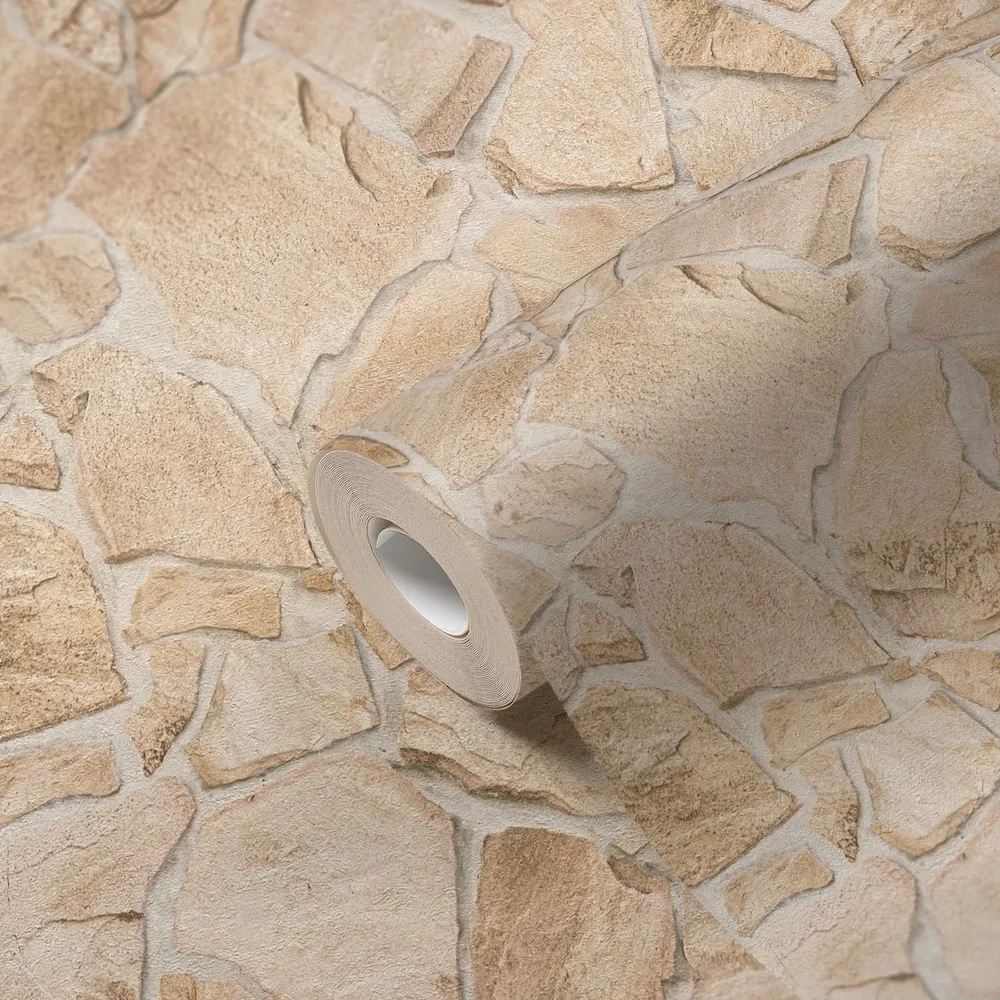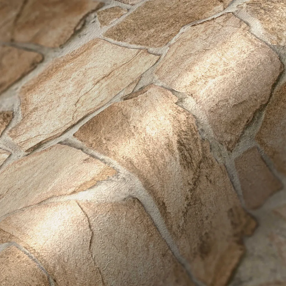 Tapeta 38932-9 Terra AS Creation Tapeta motyw muru z kamienia z efektem 3D - Beżowy, Brązowy