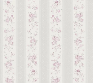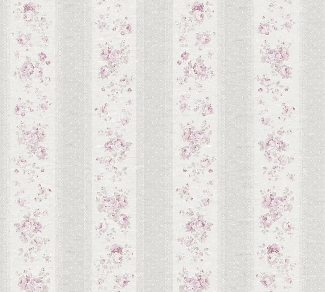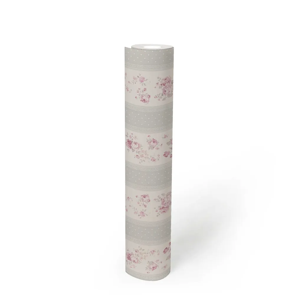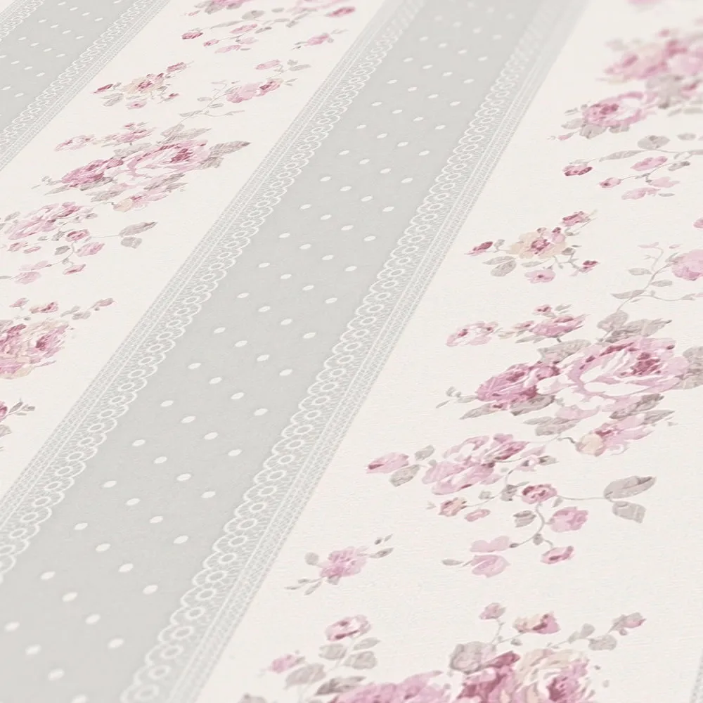 Tapeta 39069-2 Maison Charme AS Creation Tapeta w paski, kwiaty i kropki - szaro-biało-różowa