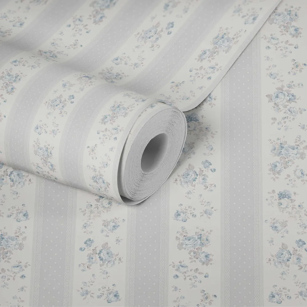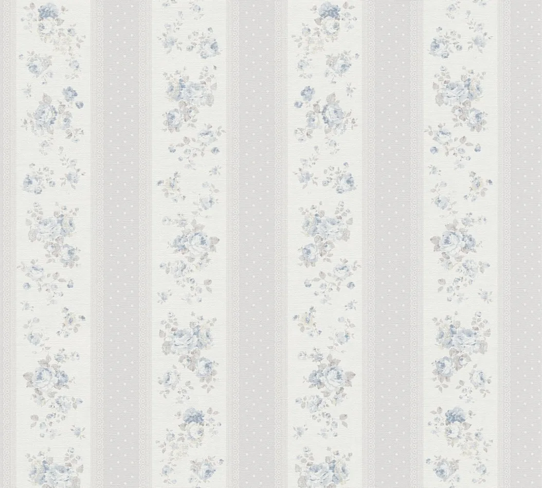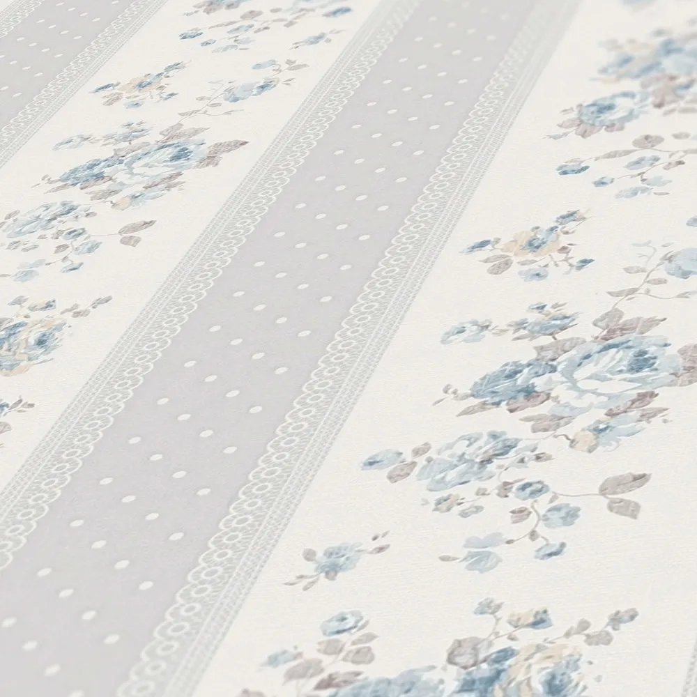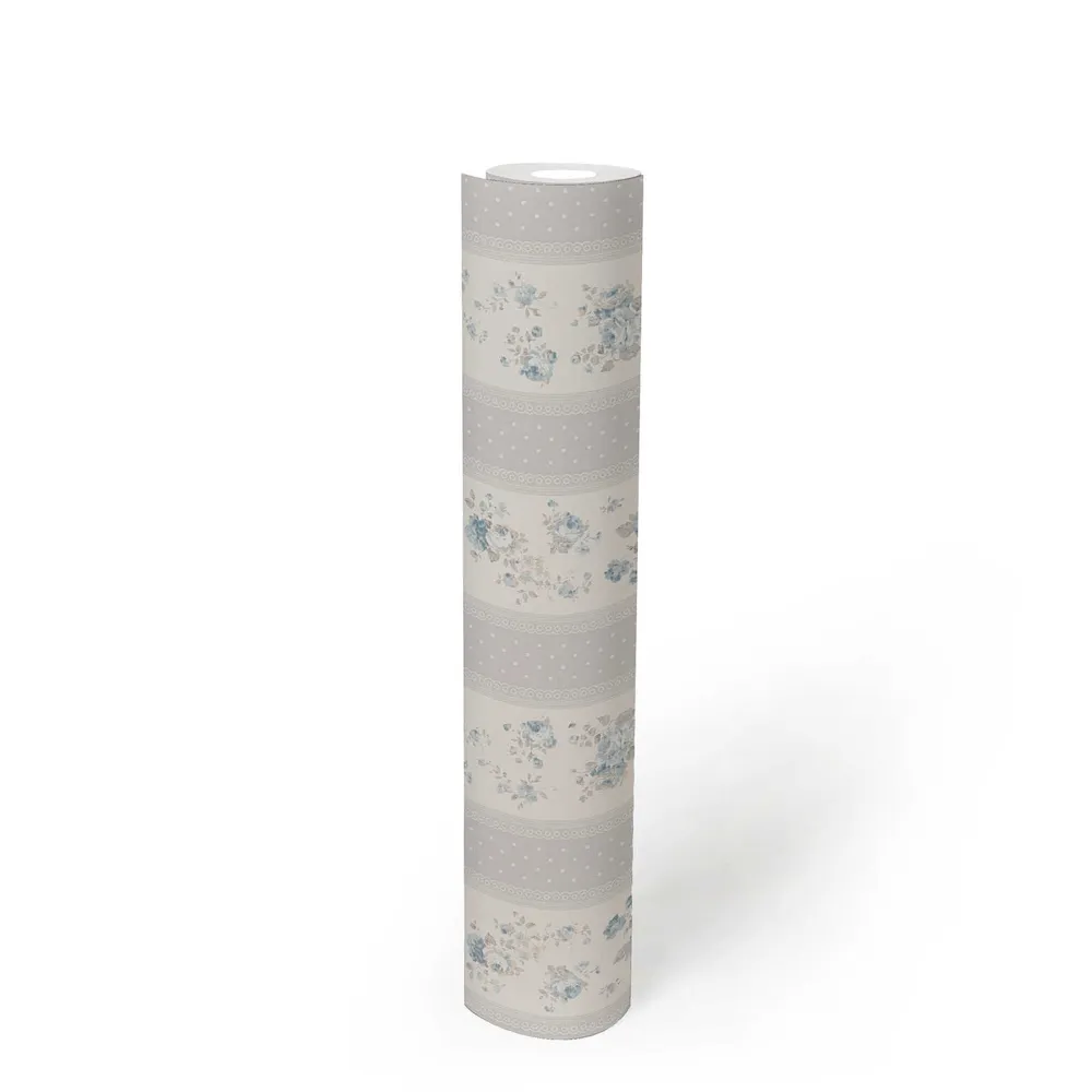 Tapeta 39069-3 Maison Charme AS Creation Tapeta flizelinowa w kropkowane i kwiatowe paski - szarość, biel, błękit