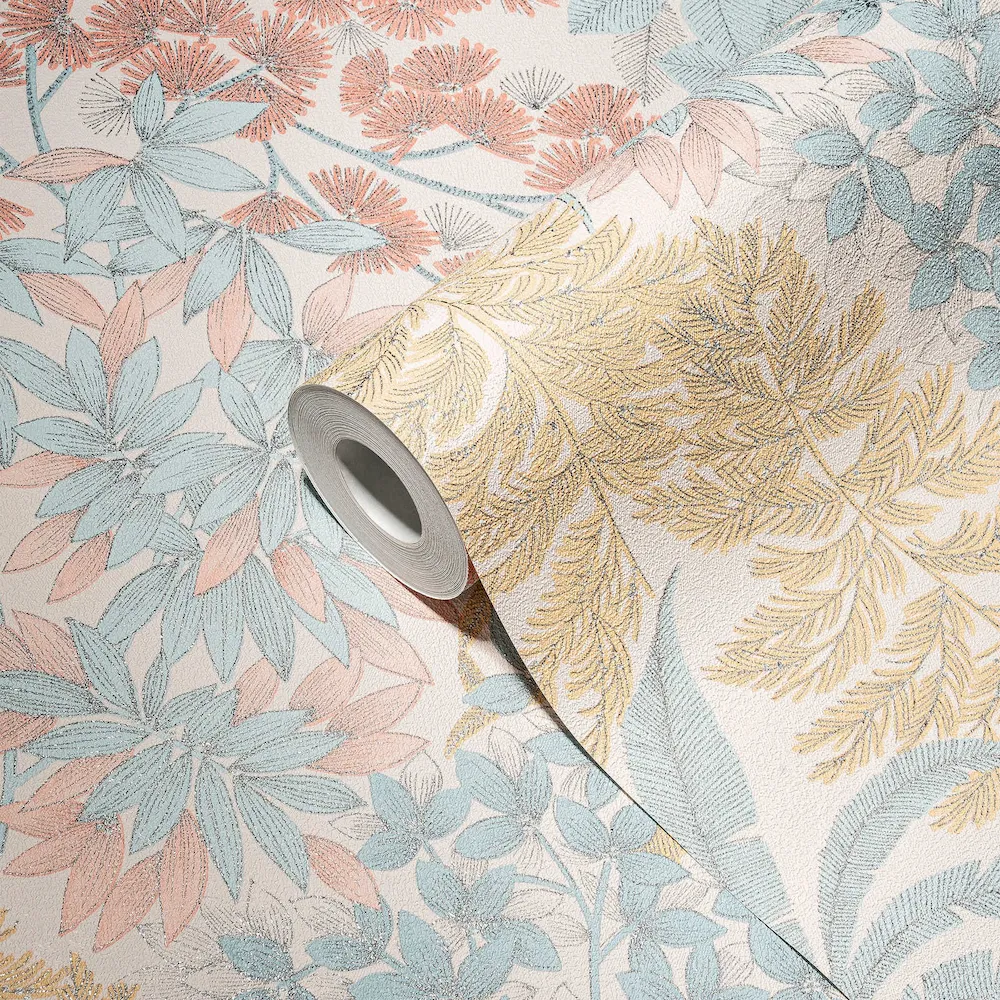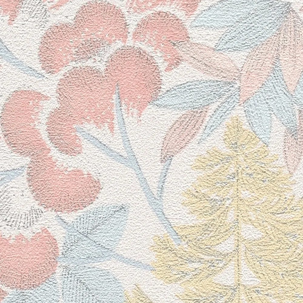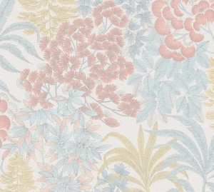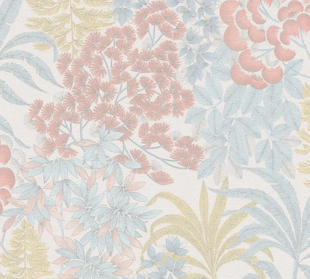 Tapeta 39128-1 Metropolitan Stories. Travel Stories AS Creation Lekko błyszcząca tapeta kwiatowa w jasnym kolorze - białym, niebieskim, żółtym
