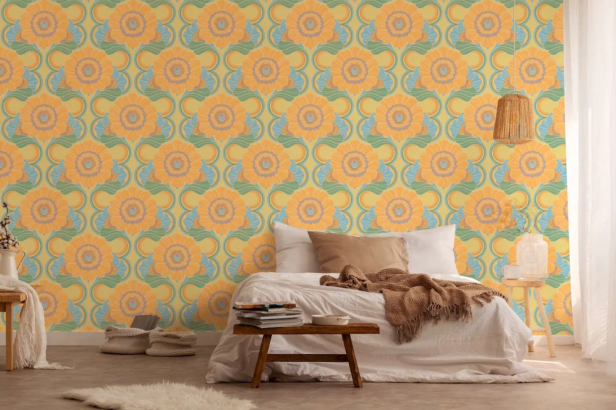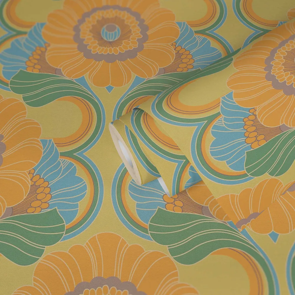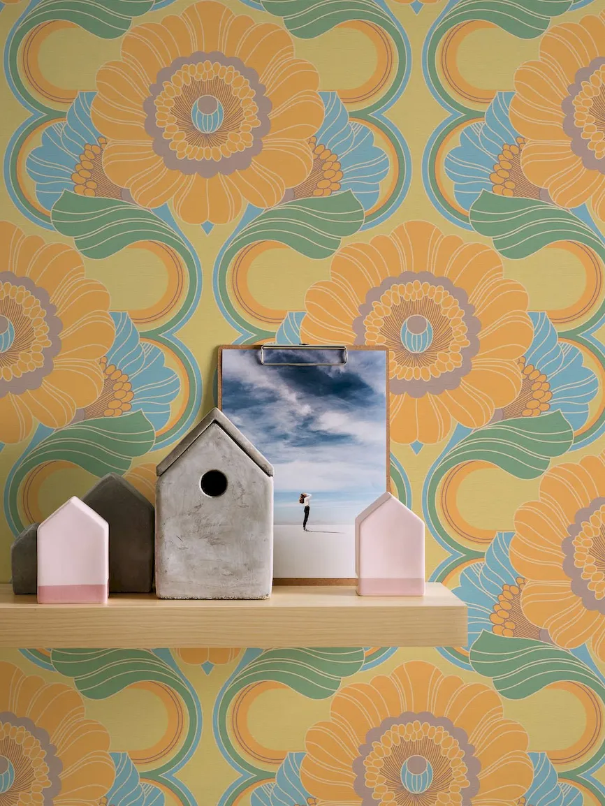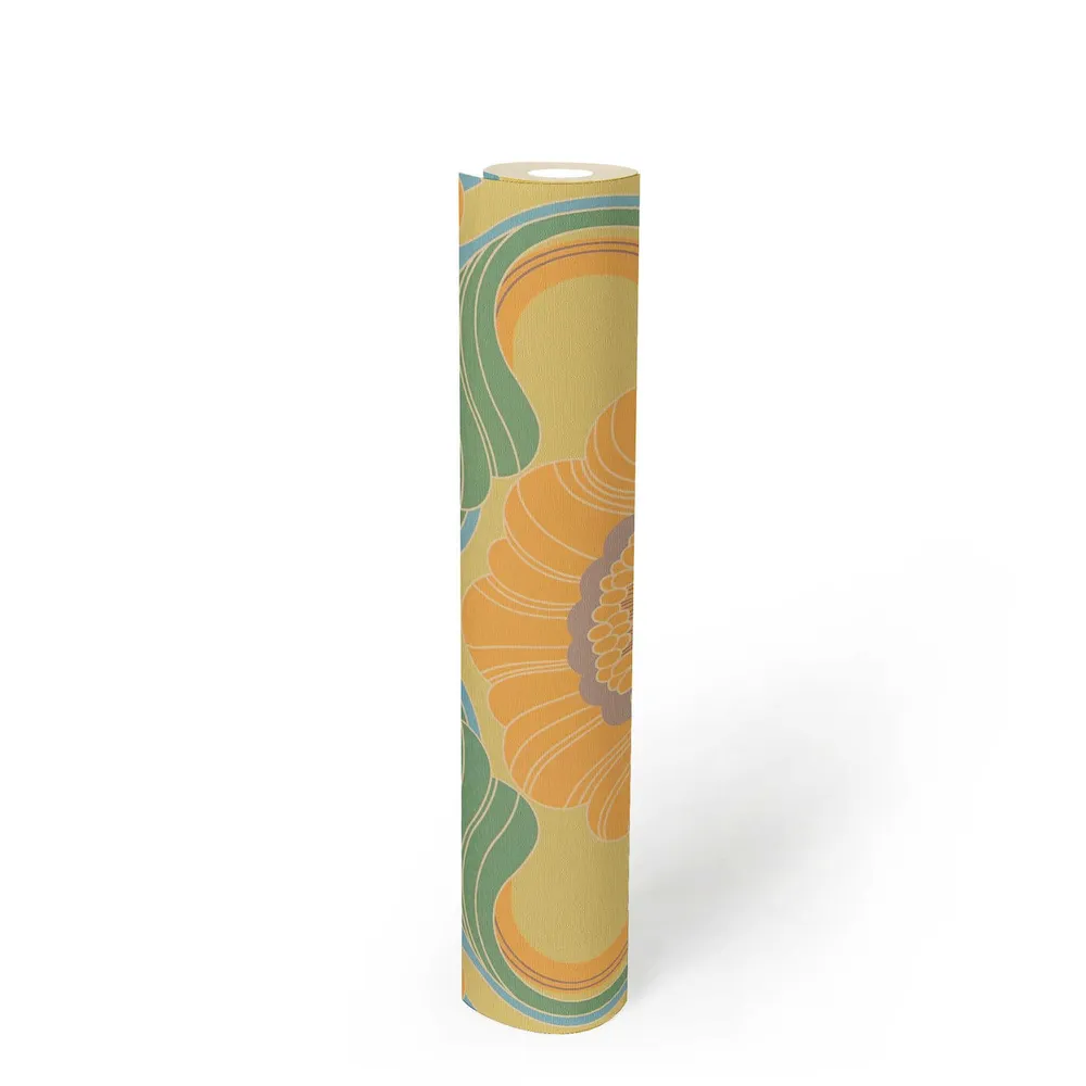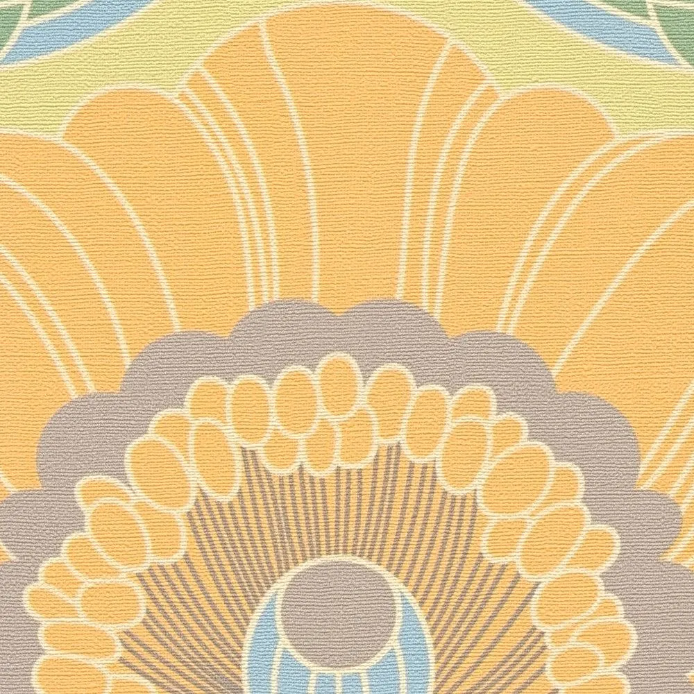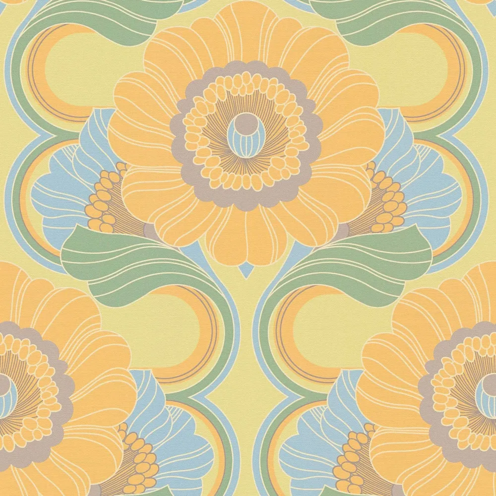 Tapeta 39530-1 A.S. Creation Retro Chic tapeta retro o lekko strukturalnej fakturze z motywem kwiatowym – niebieski, żółty, zielony