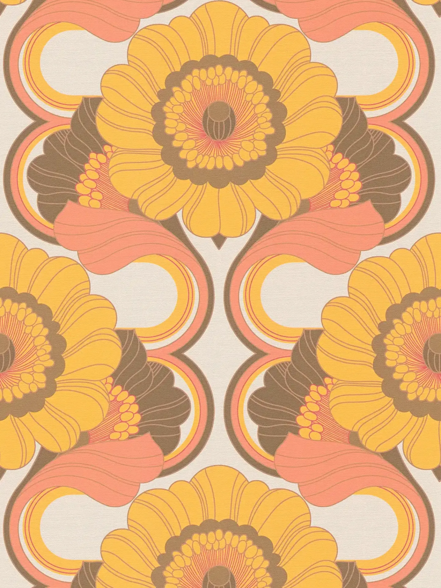 Tapeta 39530-4 A.S. Creation Retro Chic tapeta retro z motywem kwiatowym w ciepłych kolorach – brązowym, żółtym, pomarańczowym