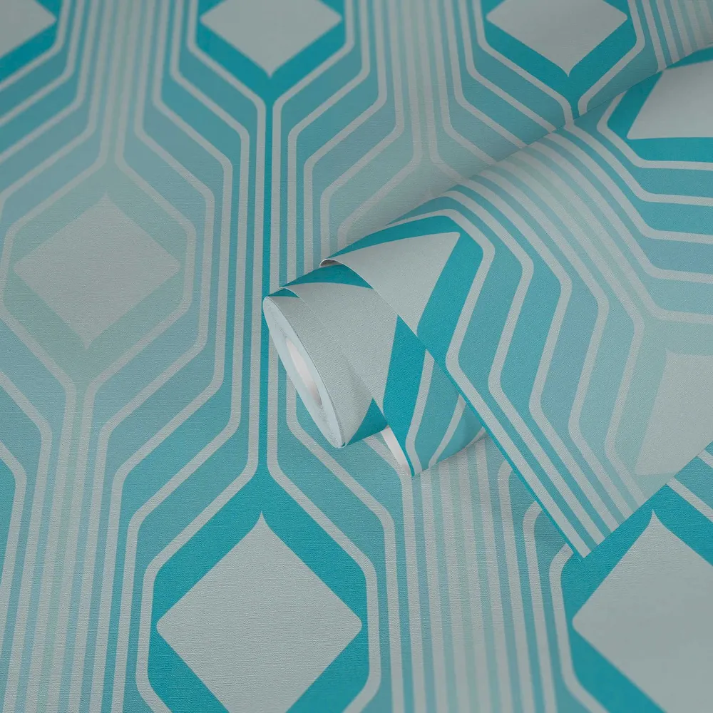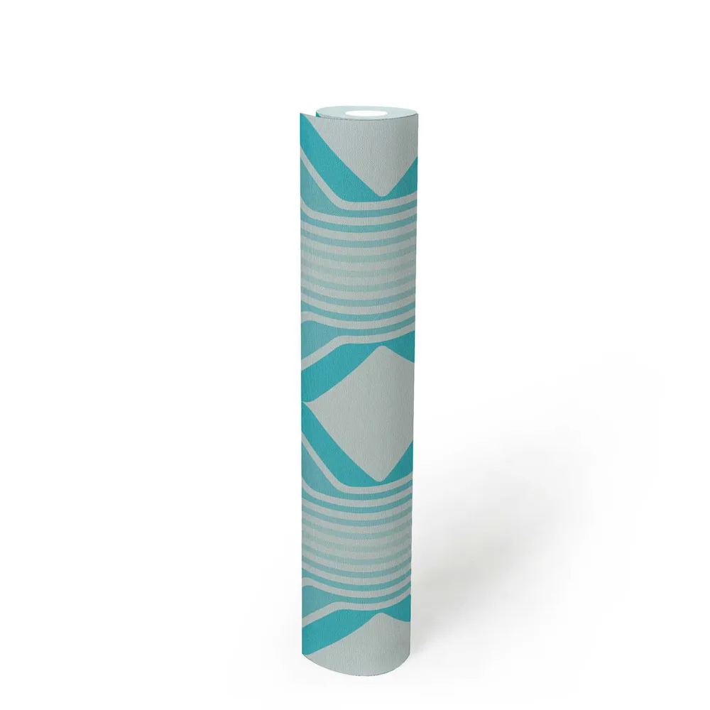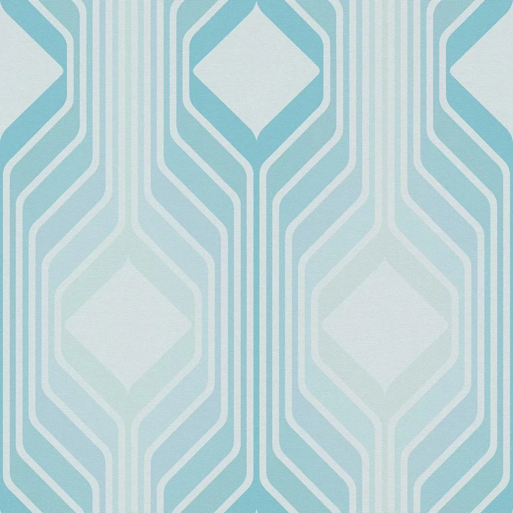 Tapeta 39532-1 A.S. Creation Retro Chic wzór diamentowy na tapecie retro włókninowej – niebieski, jasnoniebieski, turkusowy