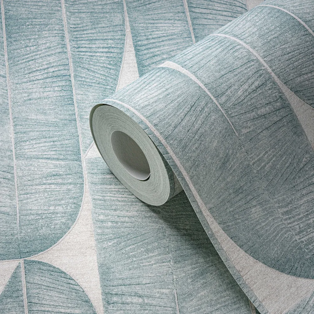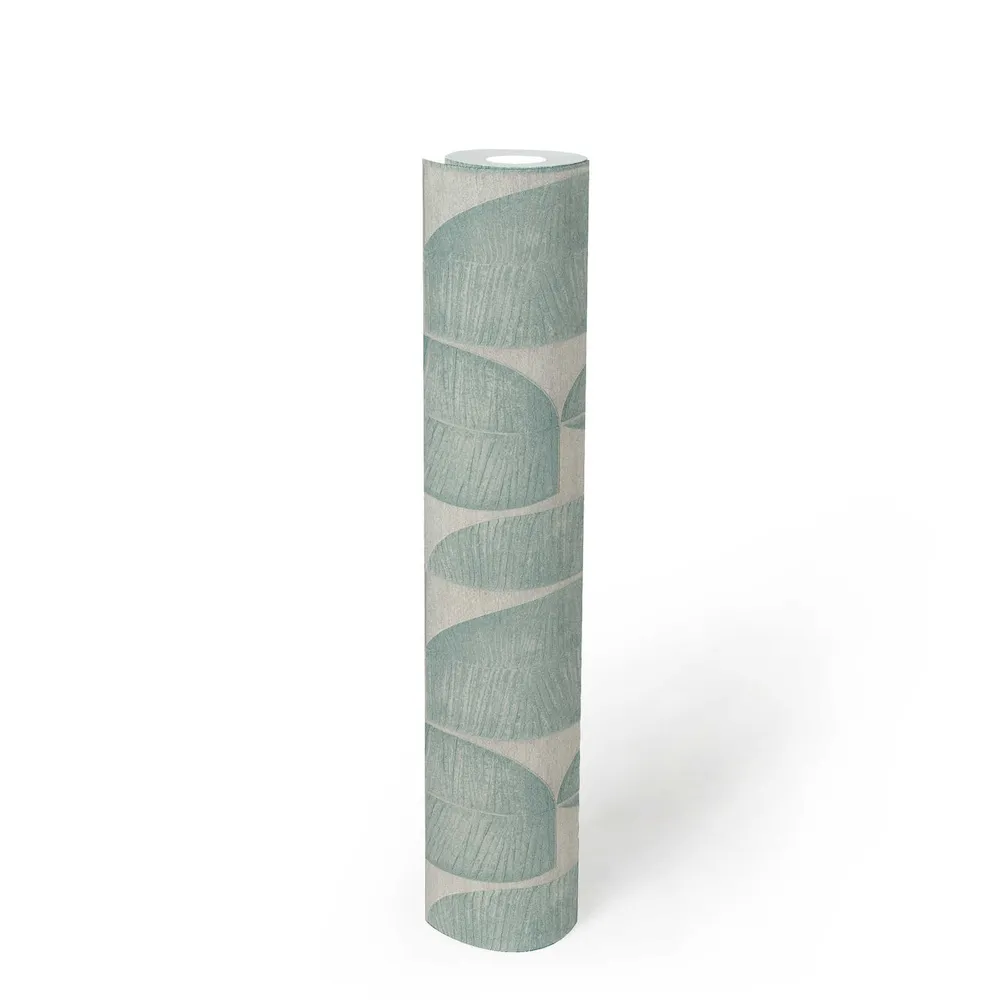 Tapeta 39658-5 A.S. Creation Stories of Life lekko teksturowana tapeta z geometrycznym wzorem liści – szary, niebieski, turkusowy