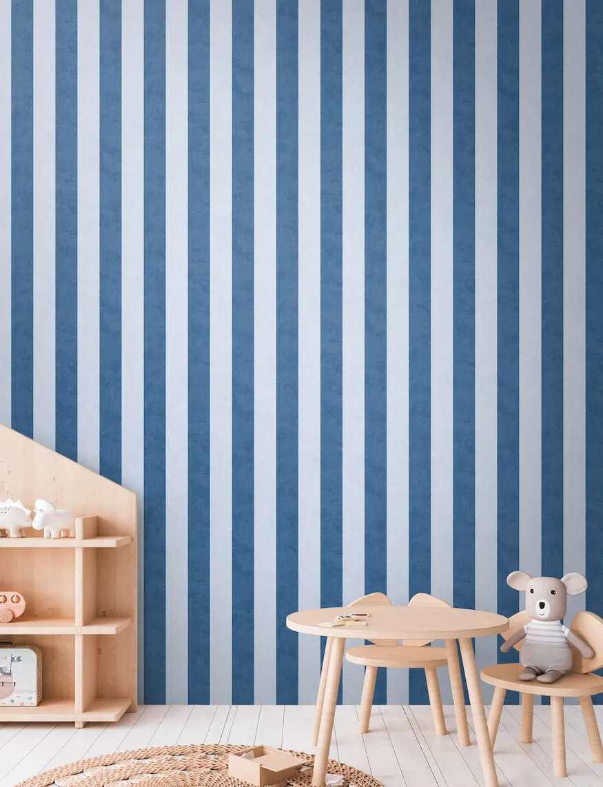 Wzór w paski dodaje dynamiki i nowoczesności, a jednocześnie wprowadza harmonię do aranżacji. Tapeta 77078-5 świetnie komponuje się z innymi elementami wystroju, takimi jak meble czy dodatki, co pozwala na stworzenie spójnej i stylowej przestrzeni. Niebieskie pasy mogą być doskonałym tłem dla dziecięcych rysunków czy zdjęć, co dodatkowo podkreśli indywidualność małego lokatora.