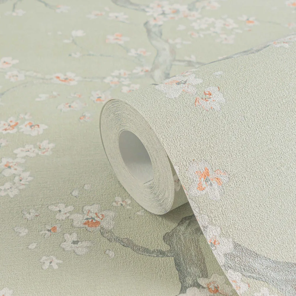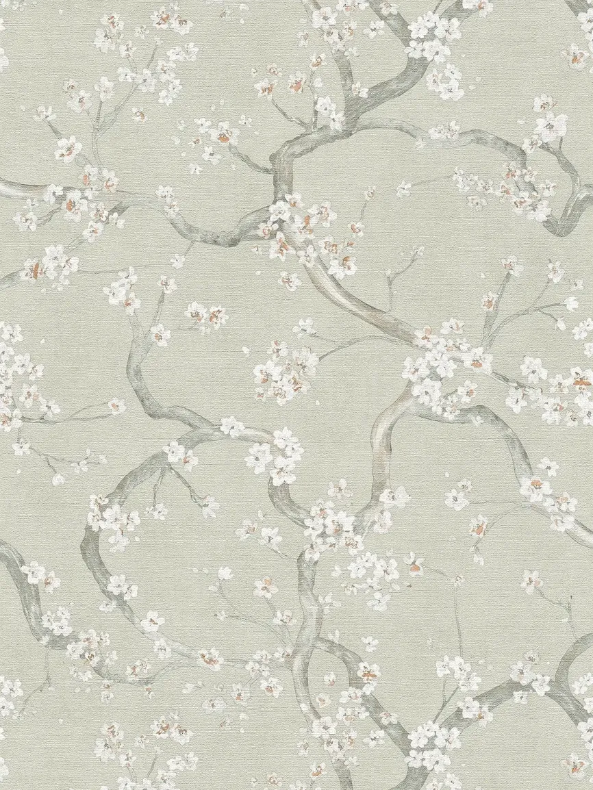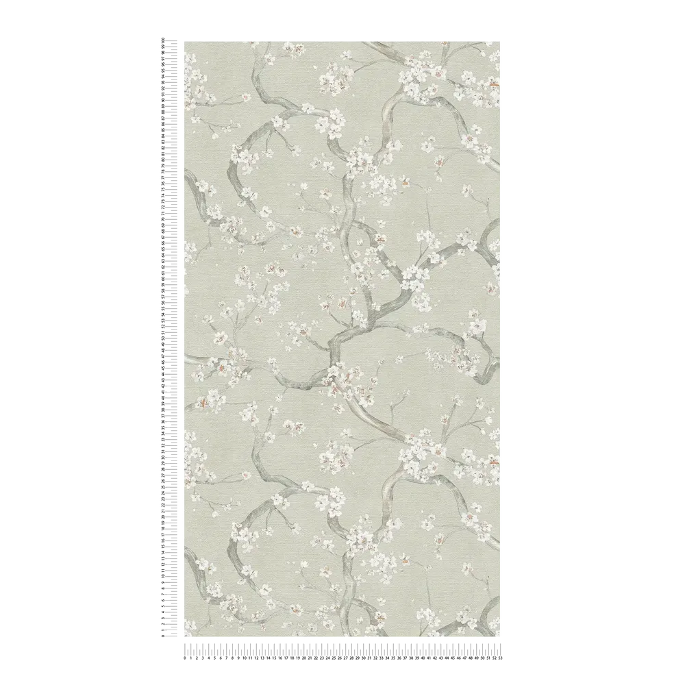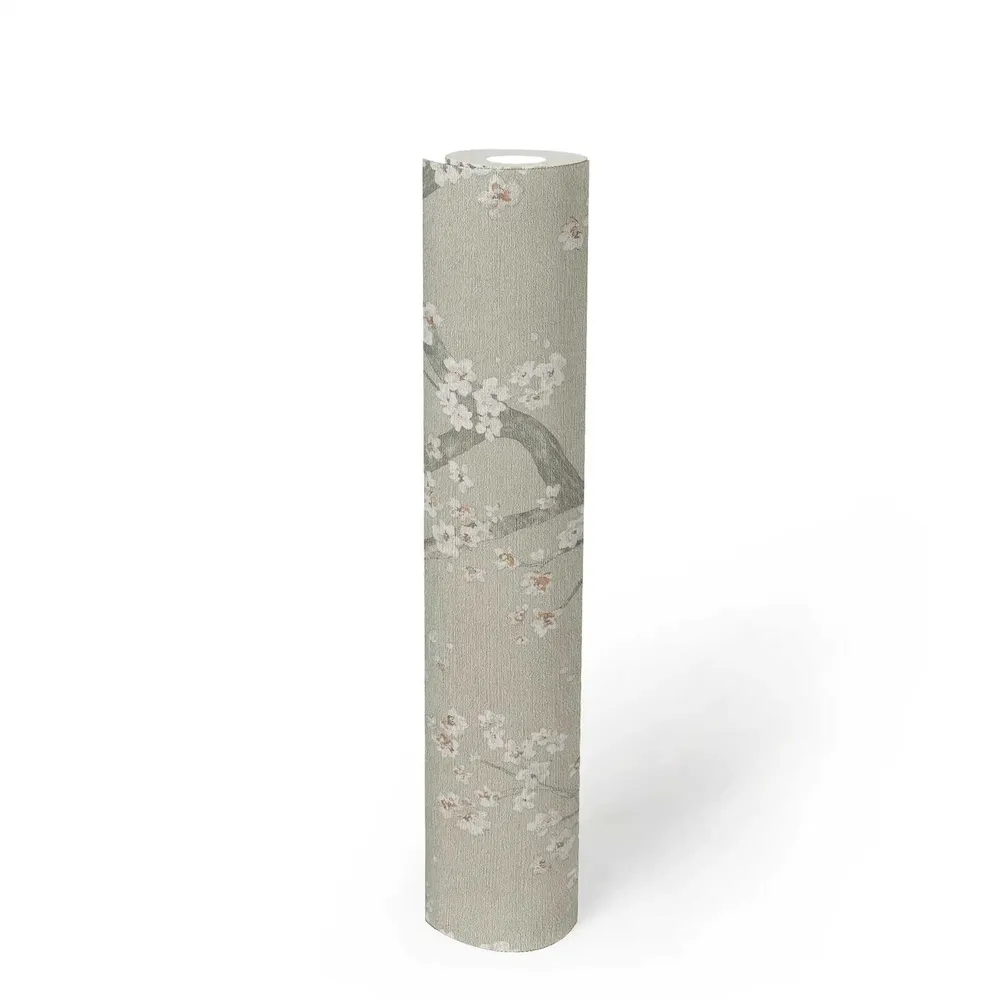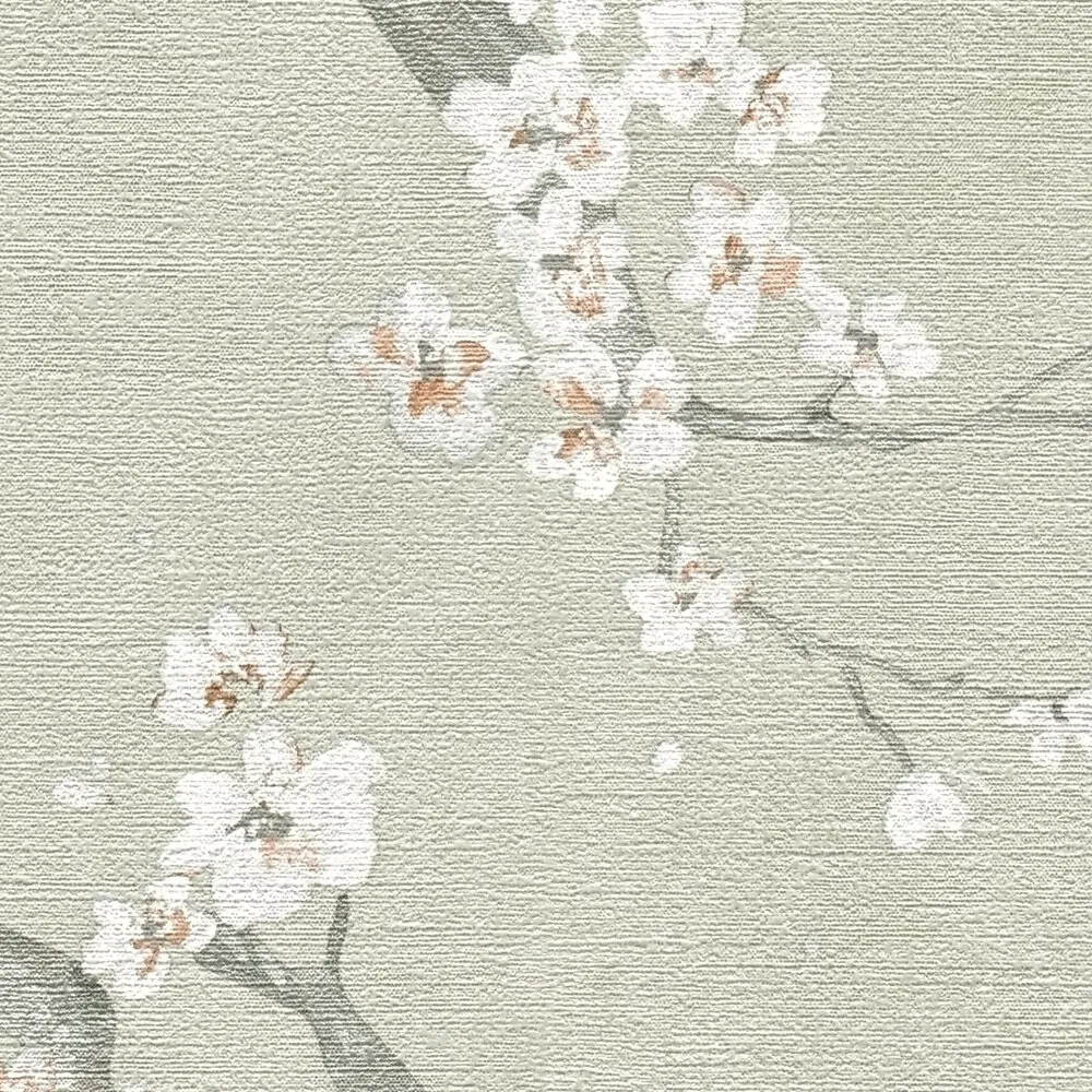 Tapeta 78199-1 A.S. Creation Metropolitan Stories. Hot Spots delikatna strukturalna, stylowa tapeta na flizelinie z delikatnym wzorem kwiatów wiśni – zielony, biały, szary