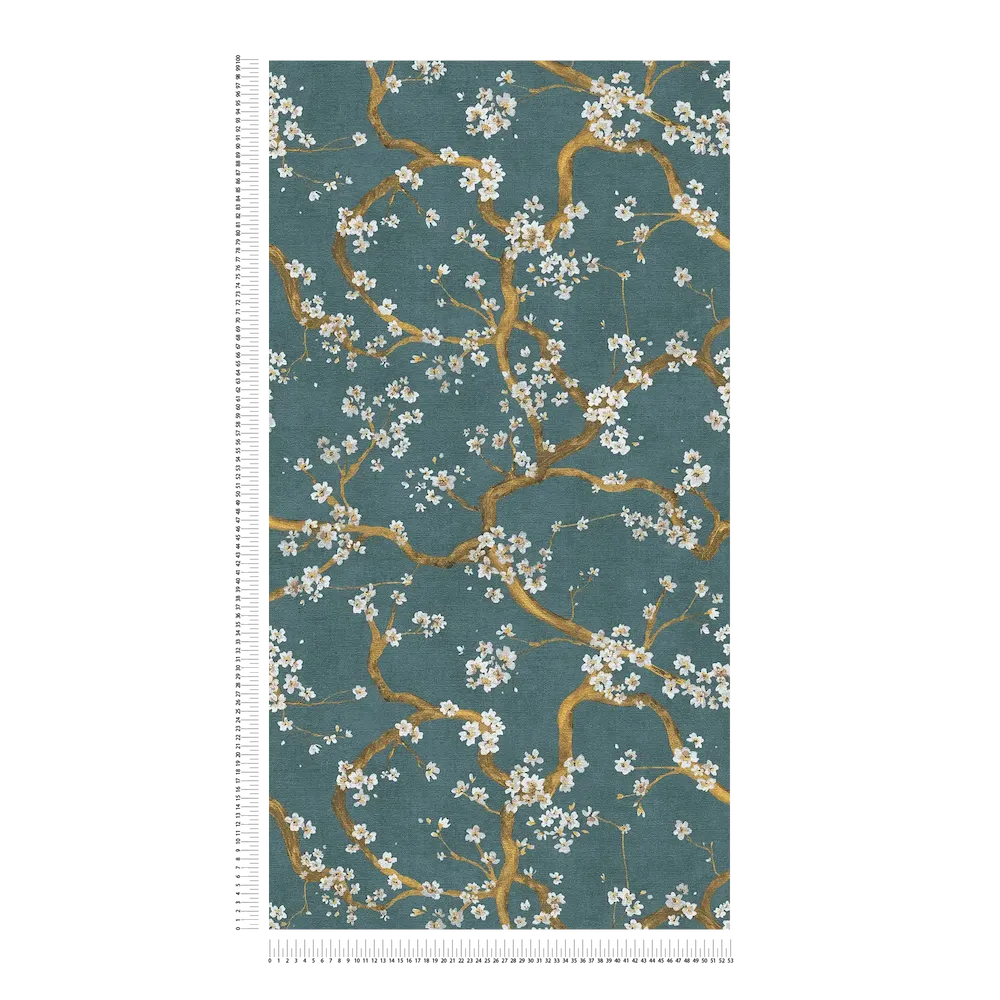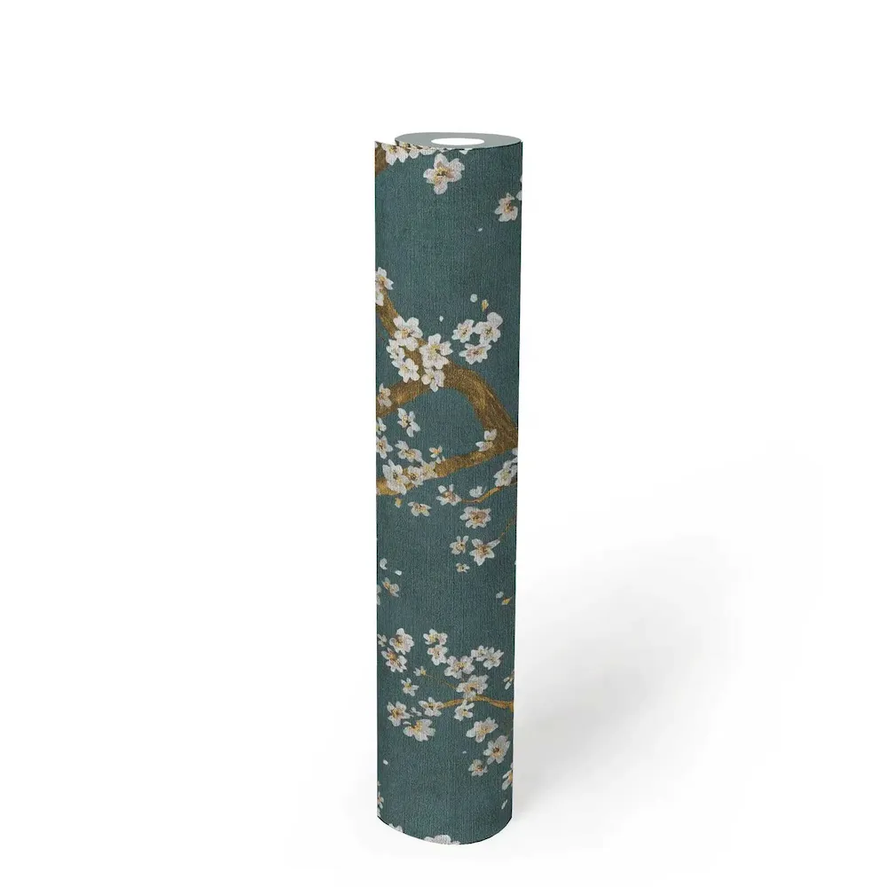 Tapeta 78199-4 A.S. Creation Metropolitan Stories. Hot Spots elegancka tapeta flizelinowa z motywem kwiatu wiśni, drobna struktura – niebieski, złoty, kremowy