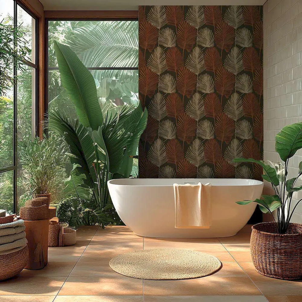 Odkryj niezwykły urok egzotycznej tapety 78673-5 A.S. Creation Metropolitan Stories. Hot Spots, która przeniesie Cię wprost do tropikalnego raju. Jej żywy wzór liści palmowych w połączeniu z subtelną strukturą sprawia, że każde wnętrze nabiera wyjątkowego charakteru. Dzięki starannie dobranym odcieniom brązu, czerwieni i beżu, tapeta doskonale komponuje się z różnorodnymi stylami aranżacyjnymi, od nowoczesnych po klasyczne.