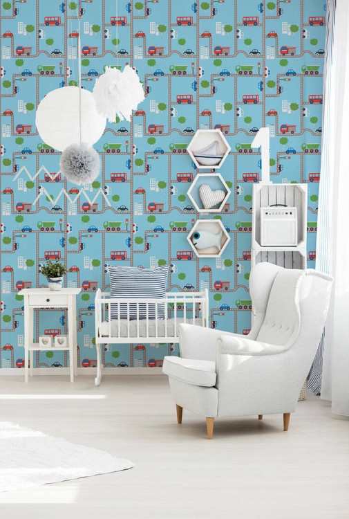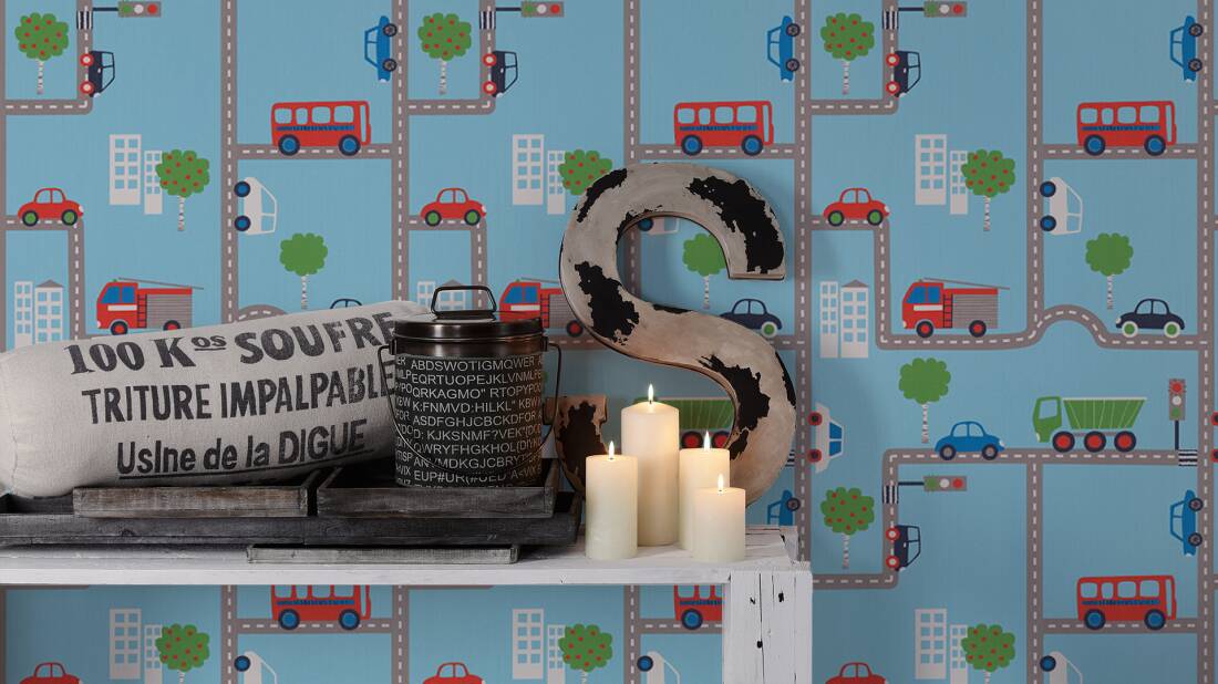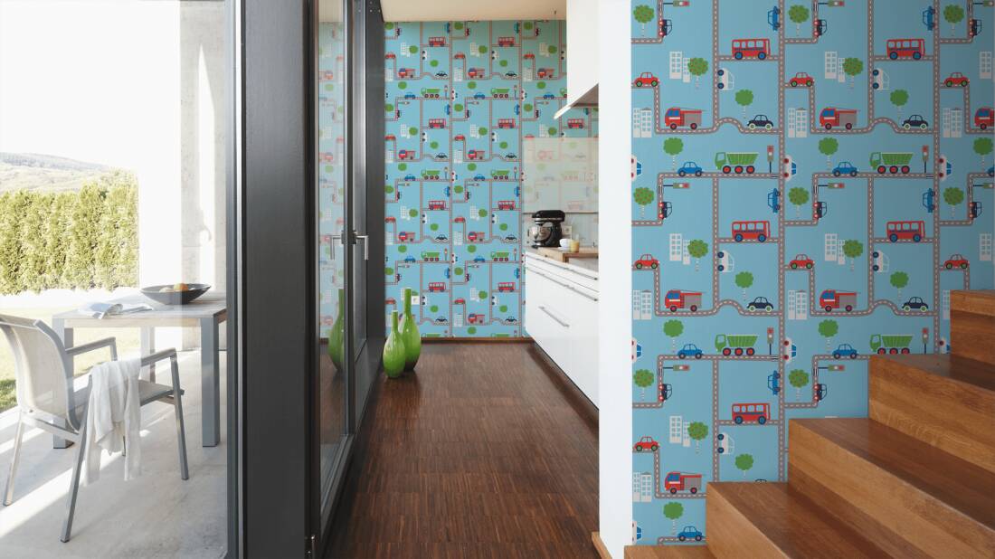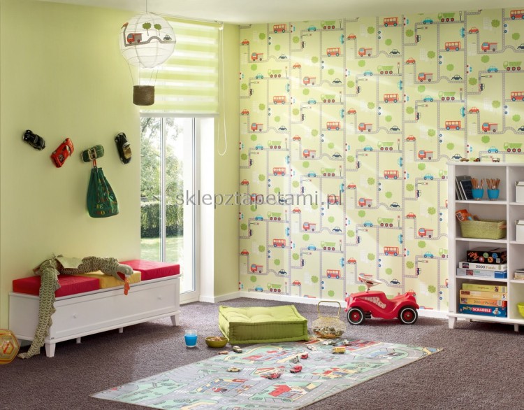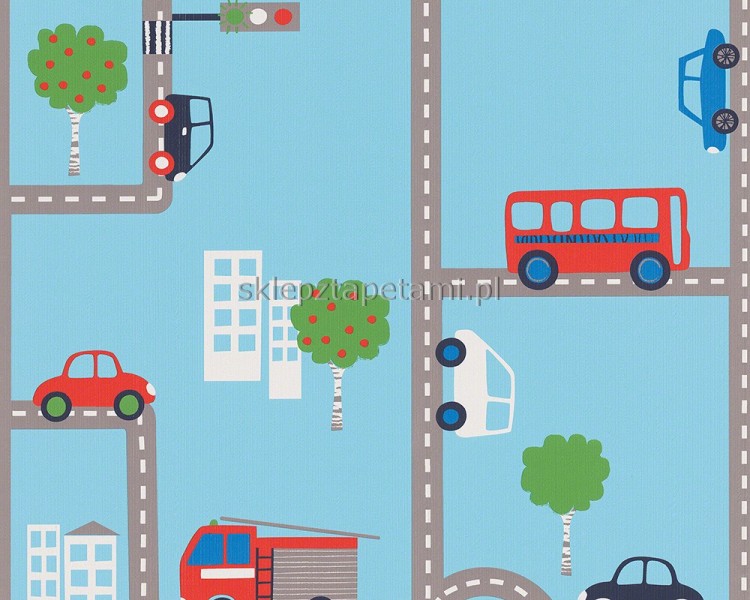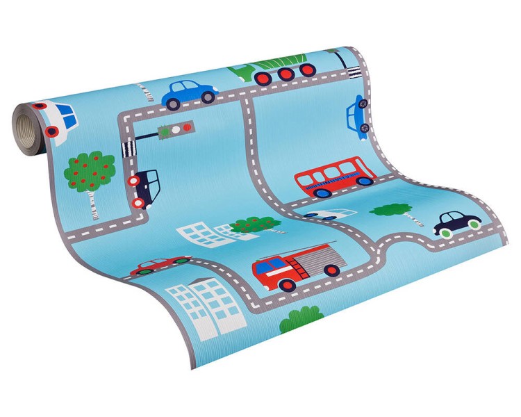 Tapeta 93632-1 z kolekcji Boys & Girls 6 A.S. Creation. Dziecięcy kolorowy wzór w samochodziki i uliczki. Idealnie sprawdzi się w pokoju dziecięcym.