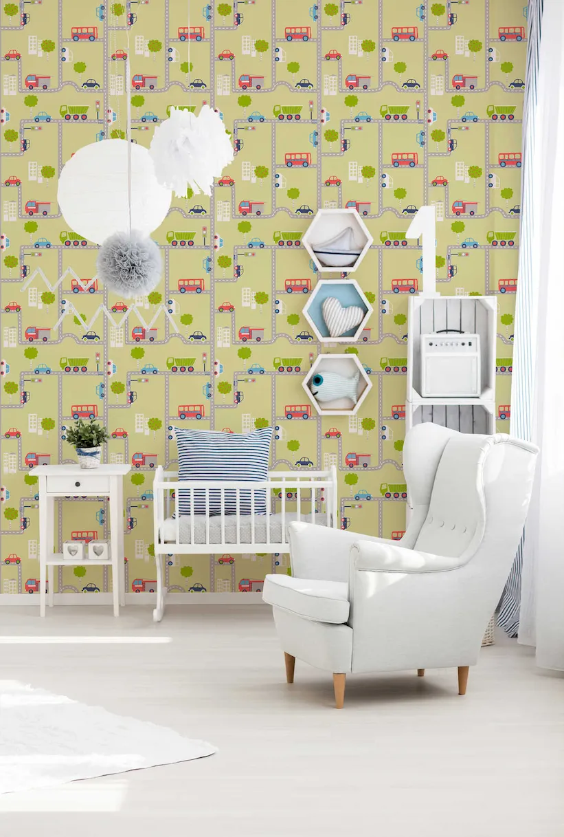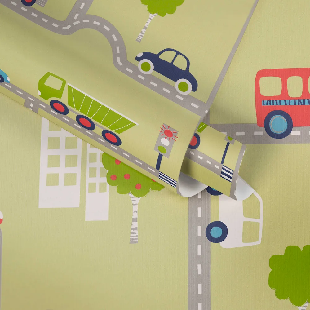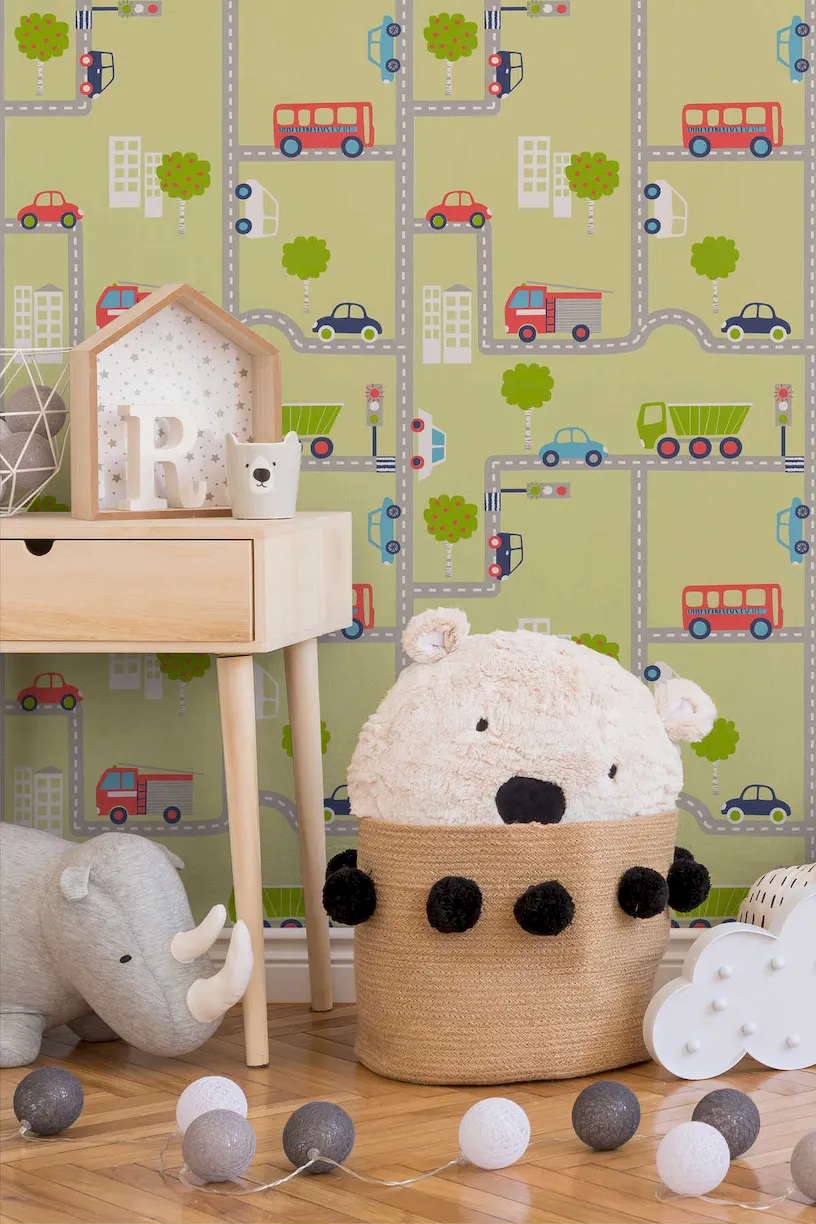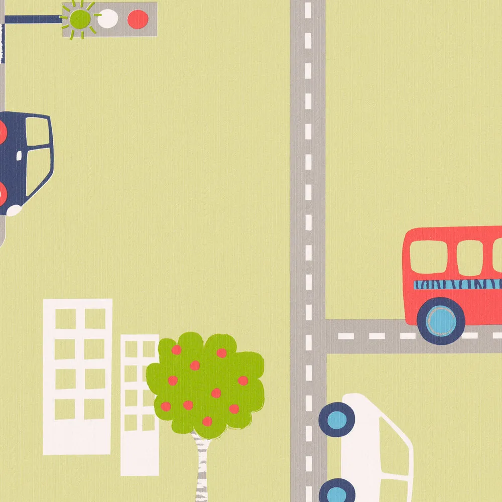 Tapeta 93632-2 Boys & Girls 6 AS Creation samochodowa dla chłopców ulice - kolorowa zieleń