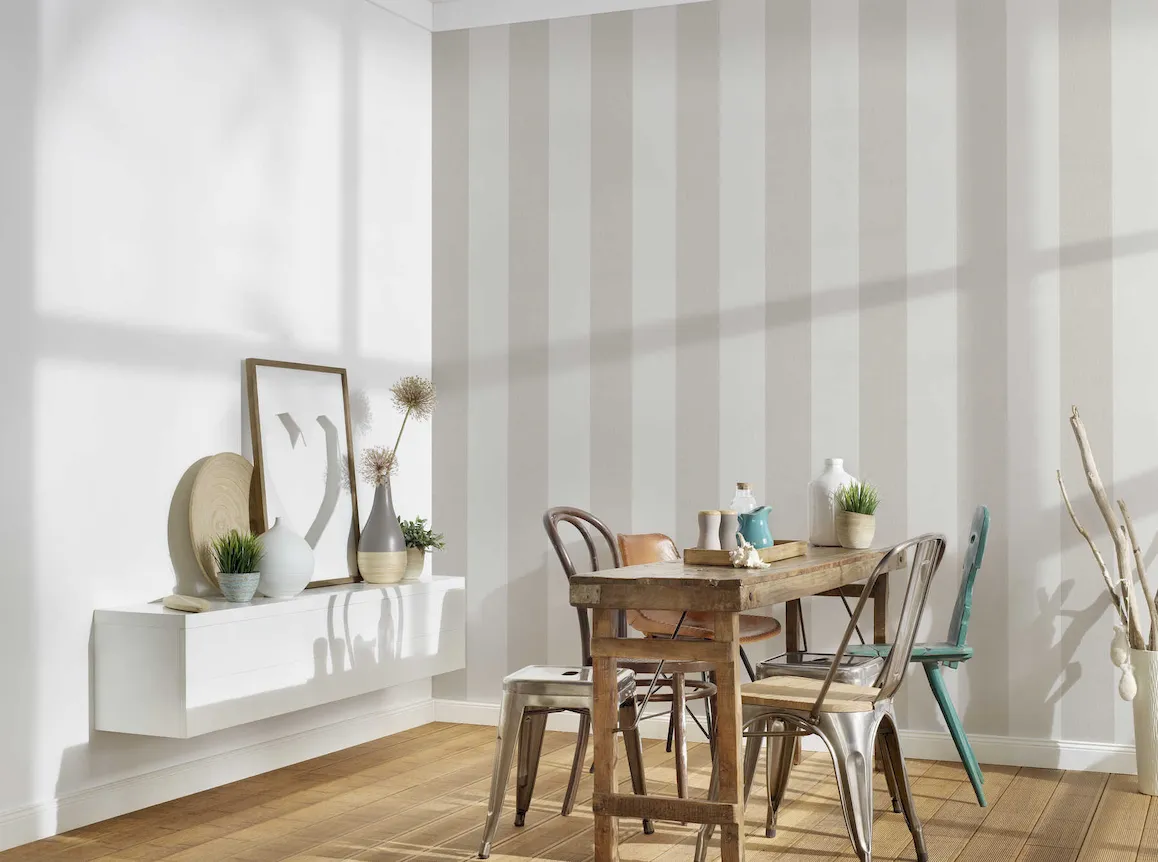 Stylowe blokowe pasy sprawiają, że tapeta doskonale wpisuje się w różnorodne aranżacje – od klasycznych po nowoczesne. Możesz ją zastosować w salonie, sypialni czy biurze, tworząc spójną i elegancką przestrzeń. W połączeniu z odpowiednimi dodatkami, takimi jak meble czy oświetlenie, tapeta 94834-2 stanie się centralnym punktem Twojego wnętrza, przyciągając wzrok i dodając mu wyjątkowego stylu.