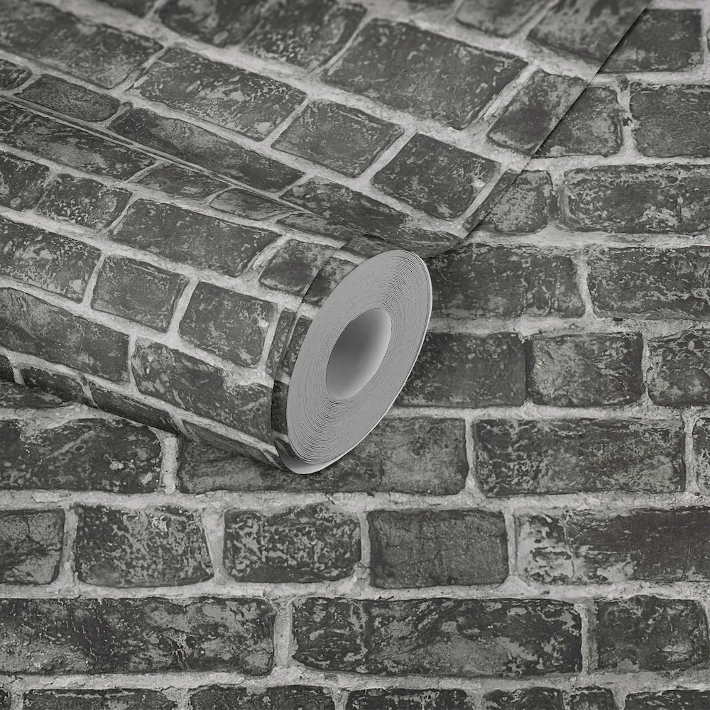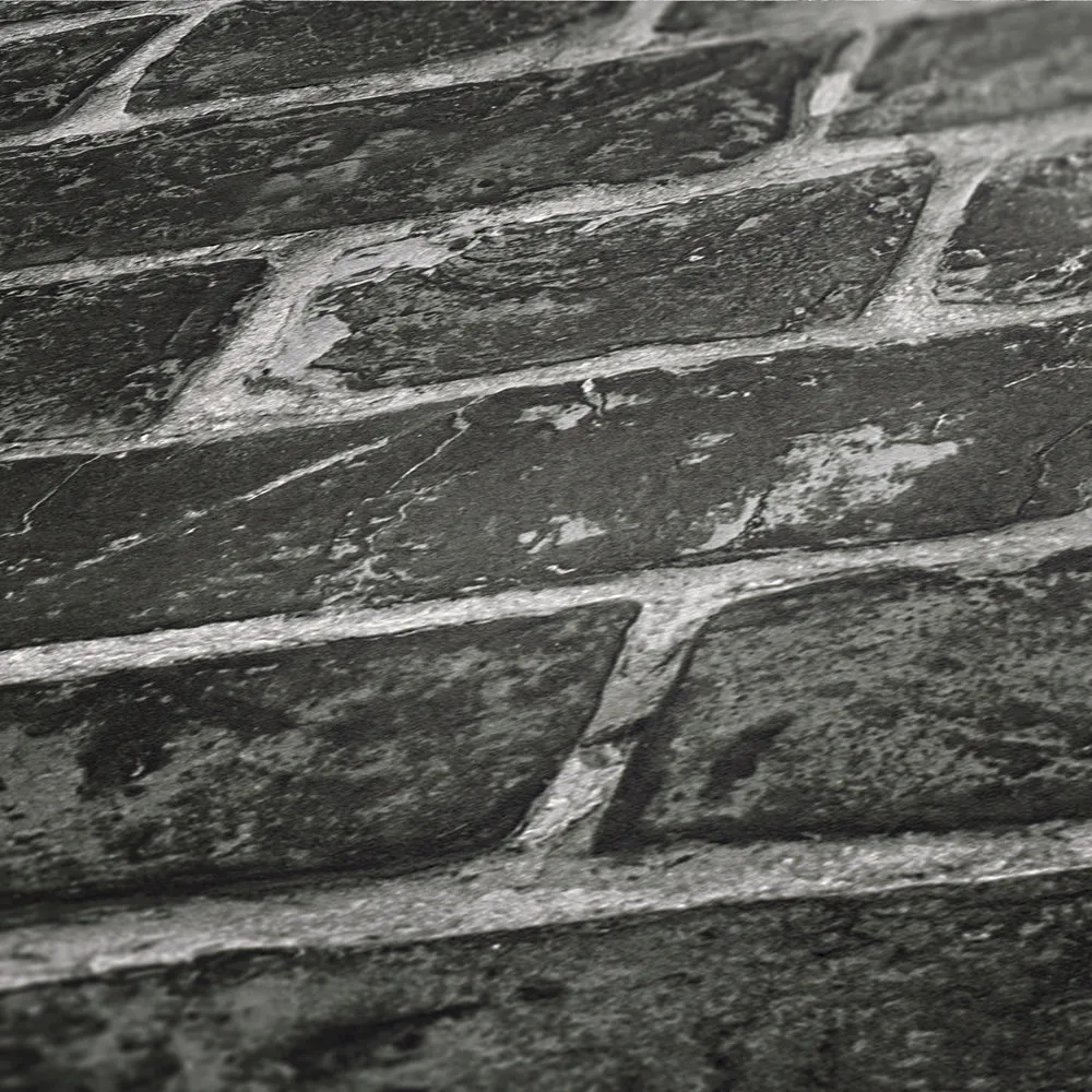 Tapeta A.S. Creation 30682-2 tapeta ścienna z naturalnego kamienia z ciemnoszarymi cegłami i jasnymi spoinami – czarny, szary