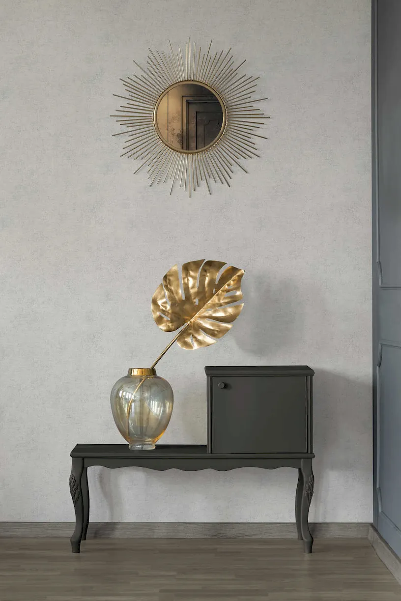 Tapeta AS 96079-6 imitująca tynk jasnoszary o motywie postarzanym z metalicznymi akcentami