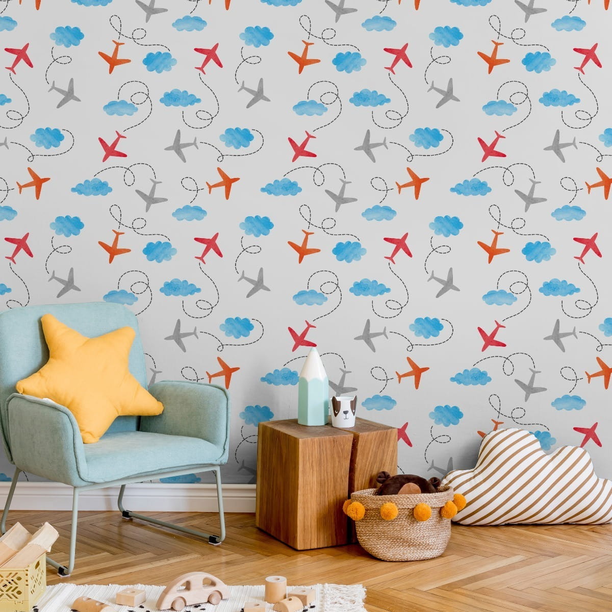 Tapeta Bajkowe Samoloty Malowane Akwarelą