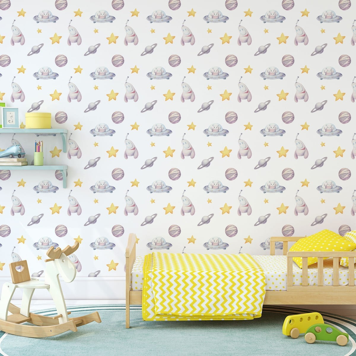 Tapeta Dla Dzieci – Gwiazdki, Planety, Rakiety