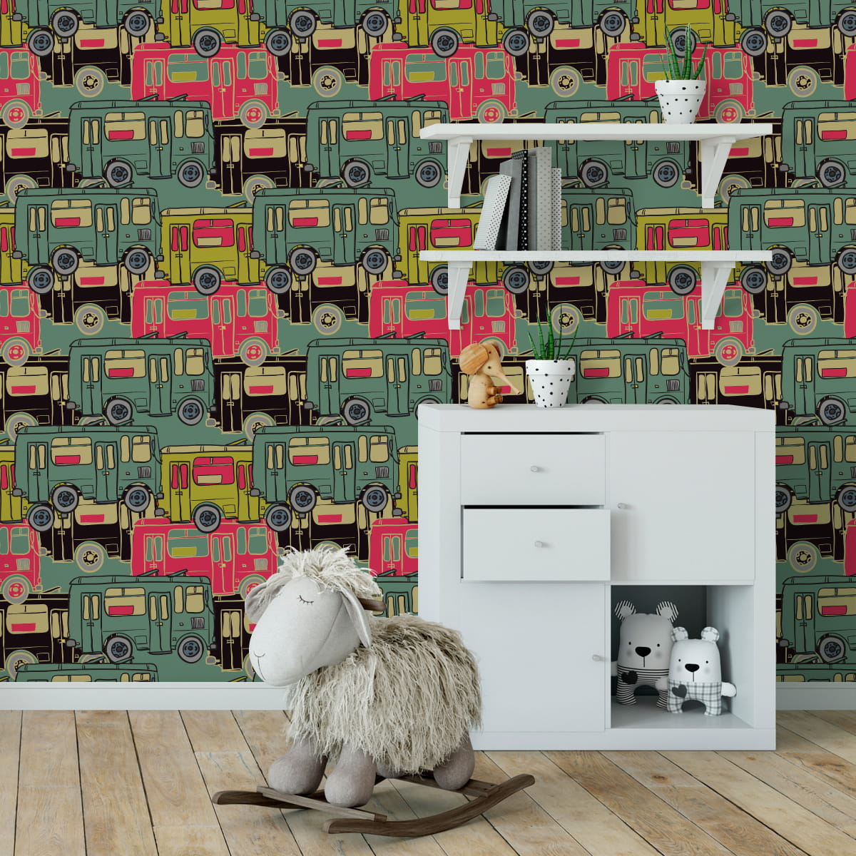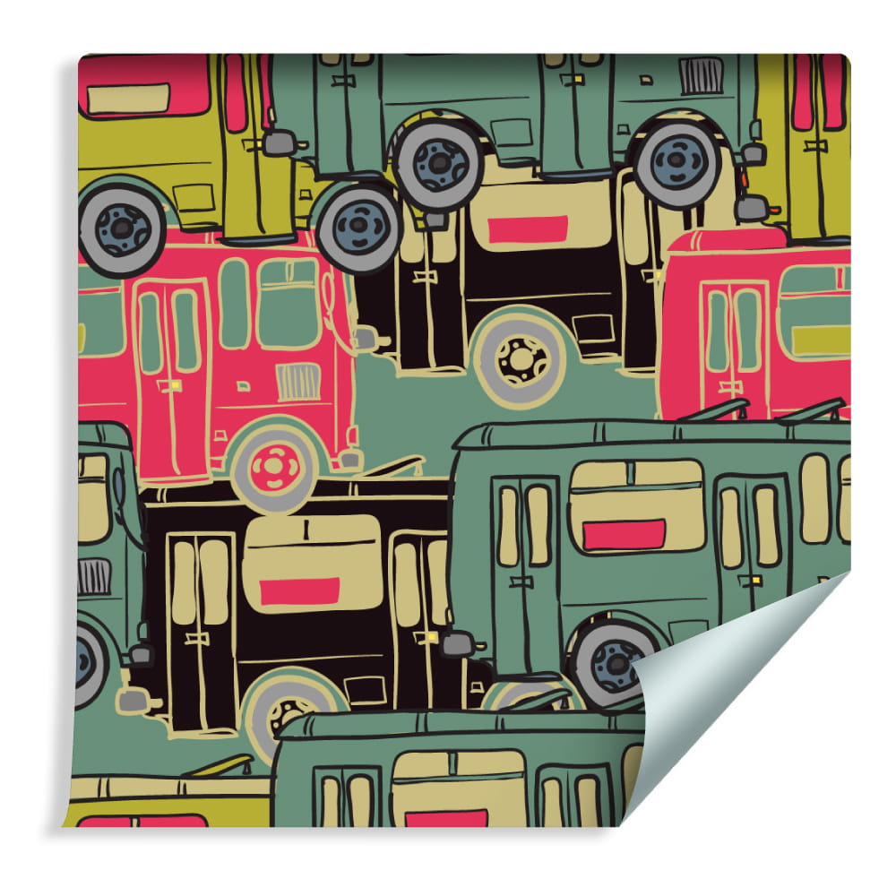 Tapeta Dla Dzieci - Kolorowe Autobusy