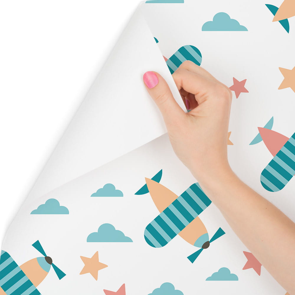 Tapeta Dla Dzieci Kolorowe Samoloty Chmury Gwiazdy