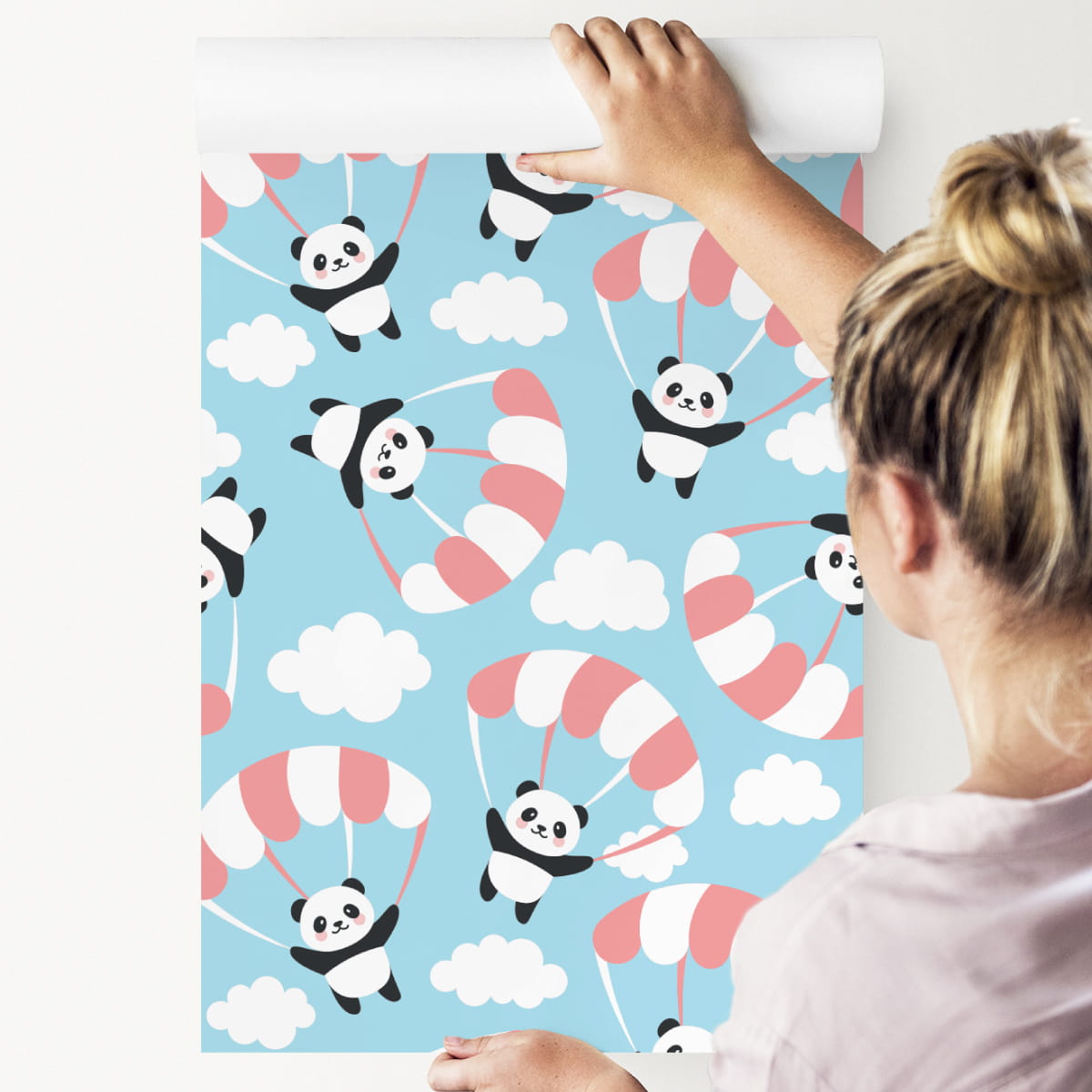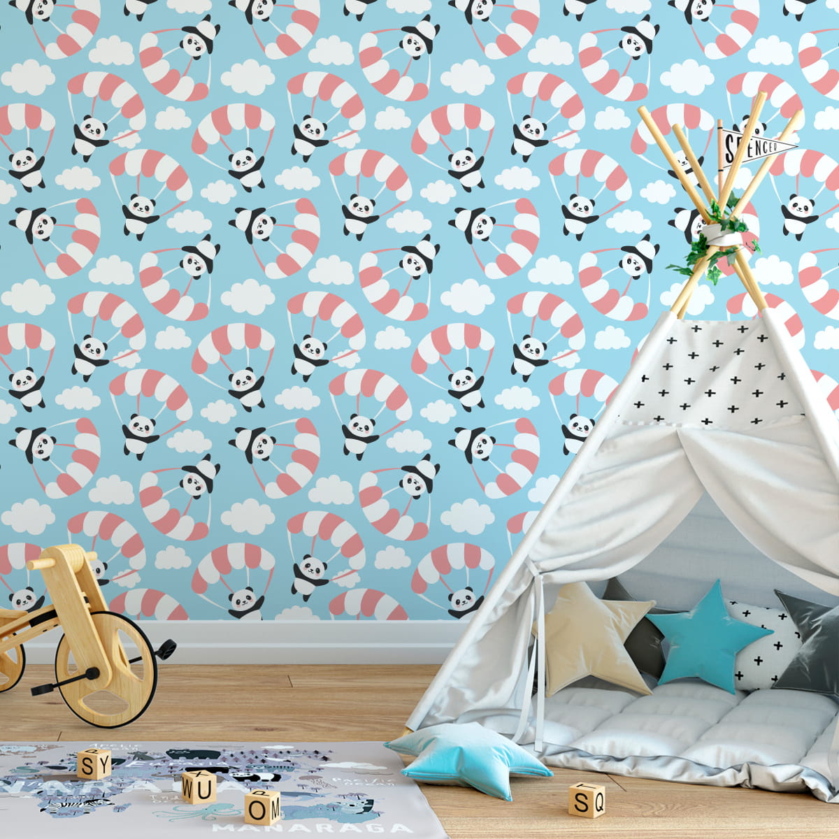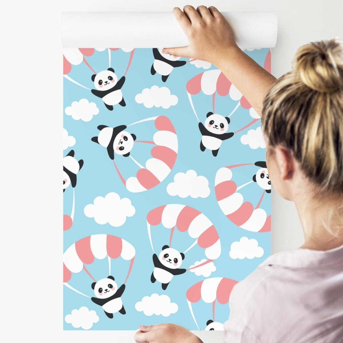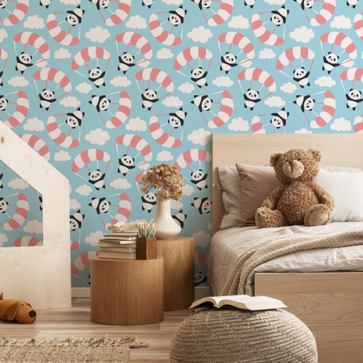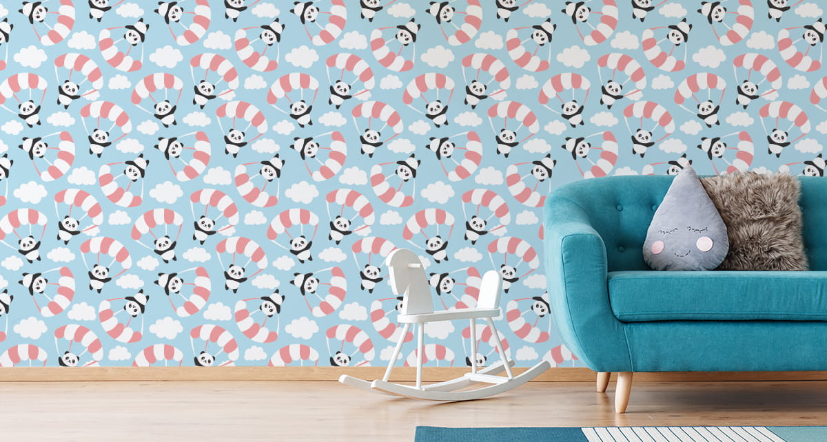 Tapeta Dla Dzieci - Latająca Panda Wśród Chmur