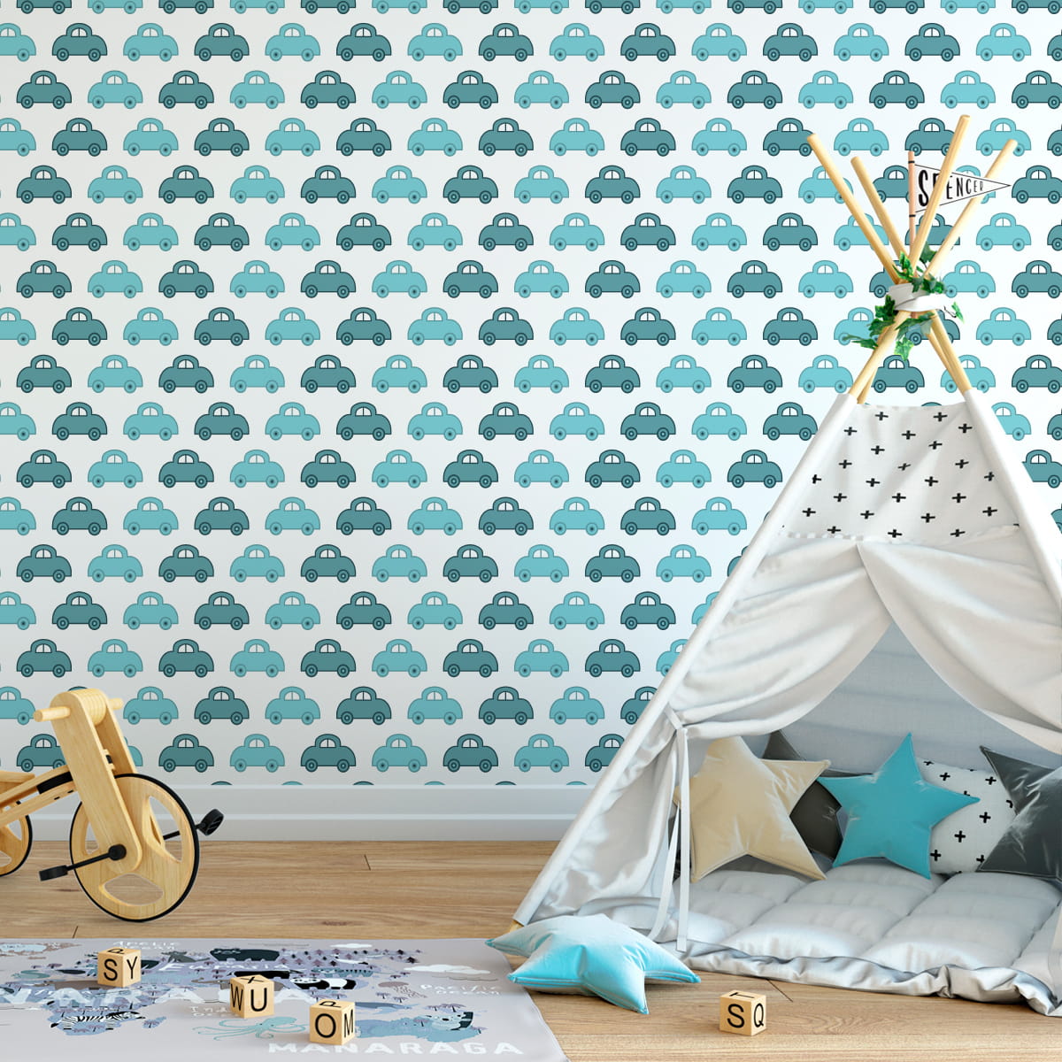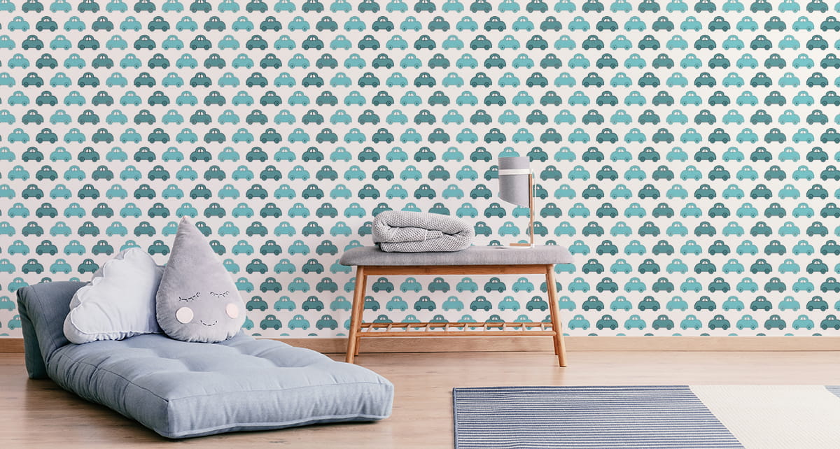 Tapeta Dla Dzieci - Niebieskie Autka