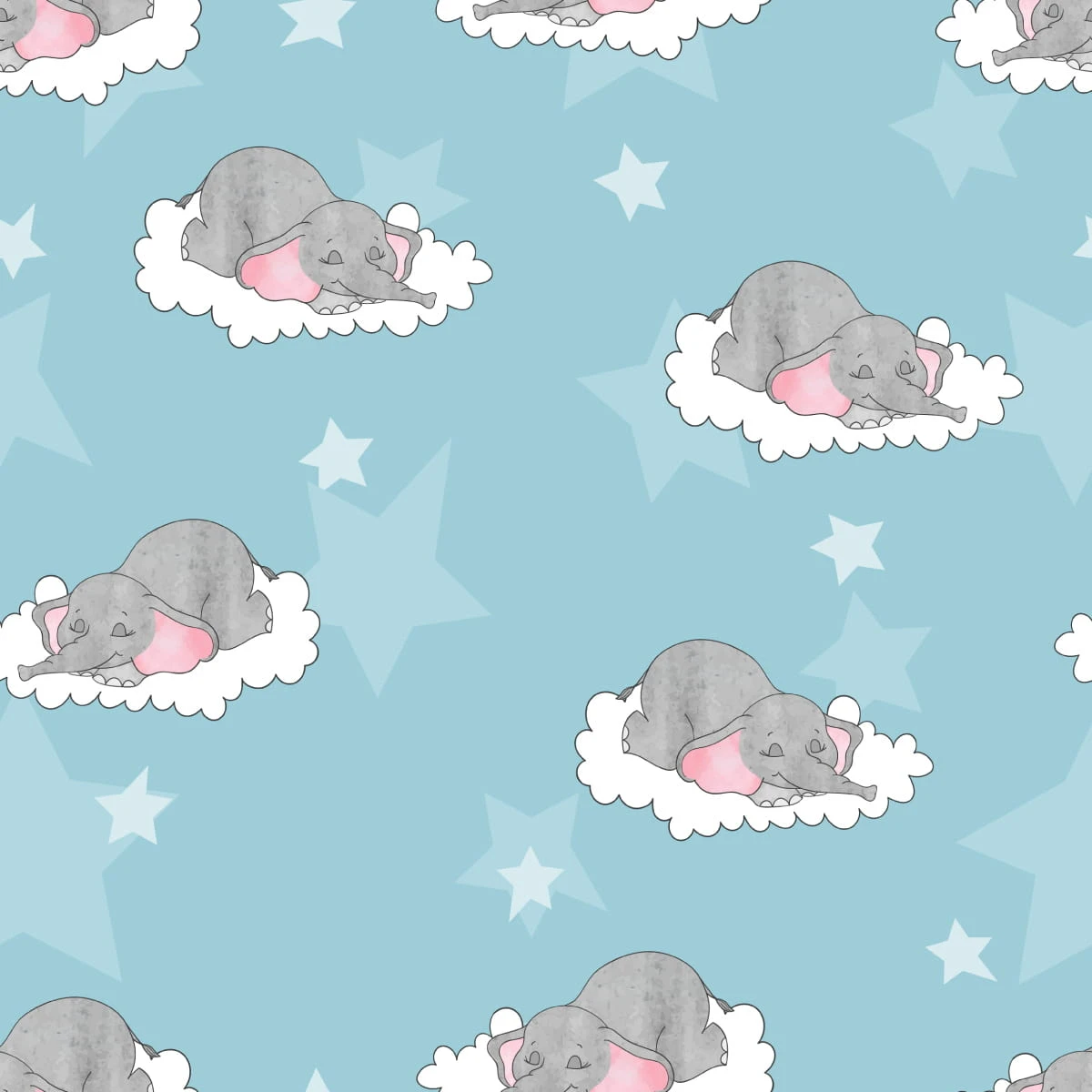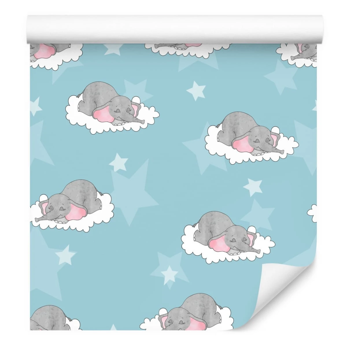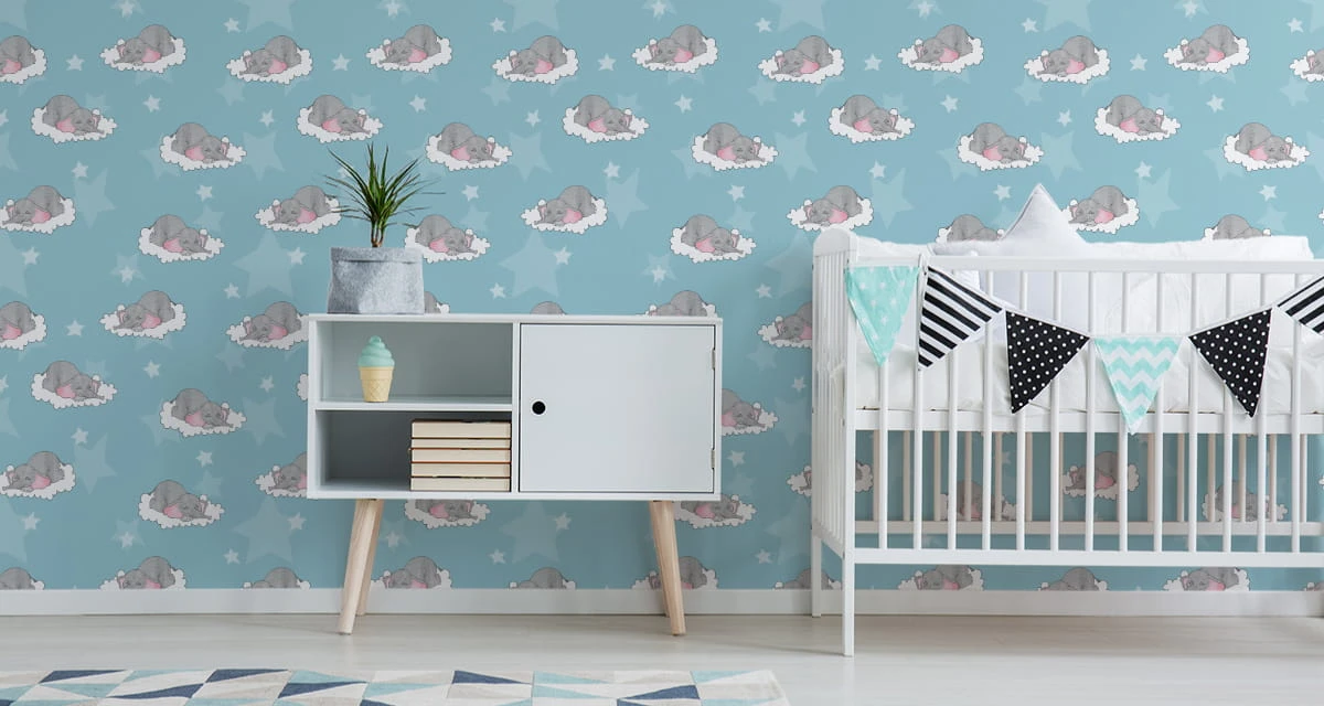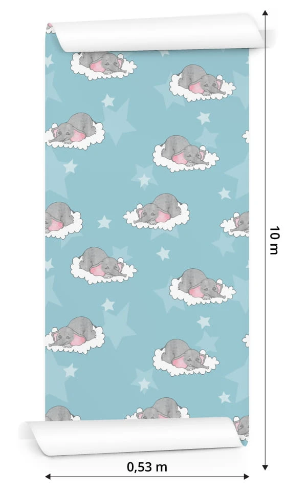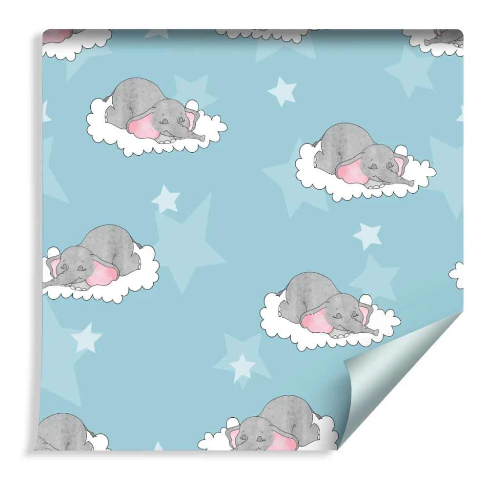 Tapeta Dla Dzieci-Śpiące Słoniki W Chmurach