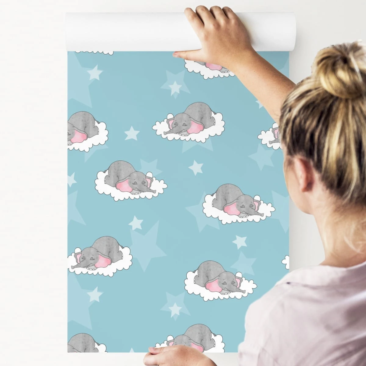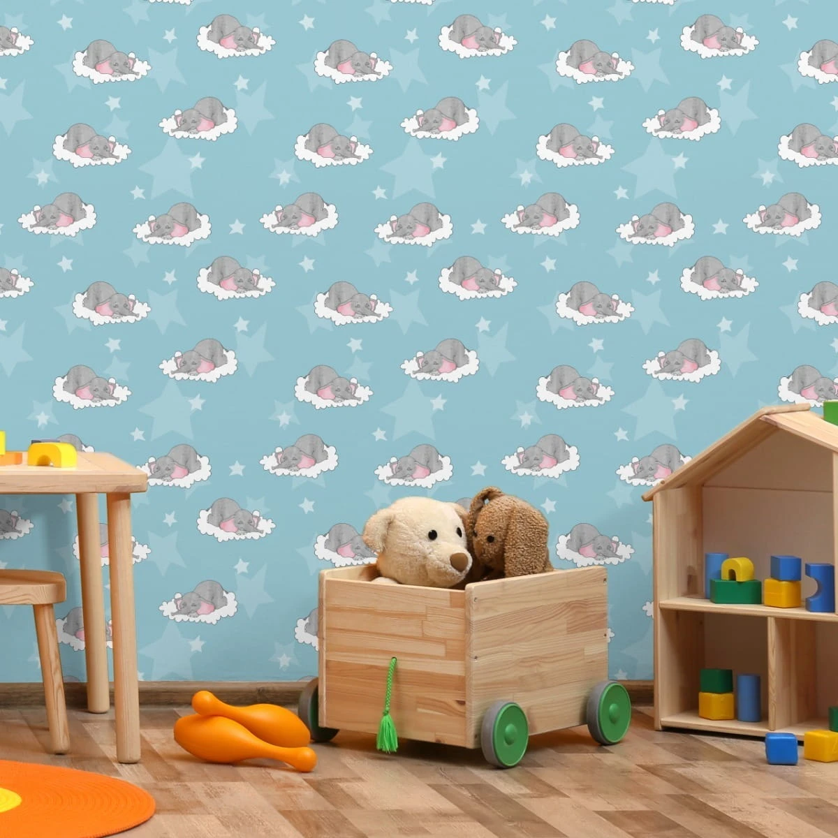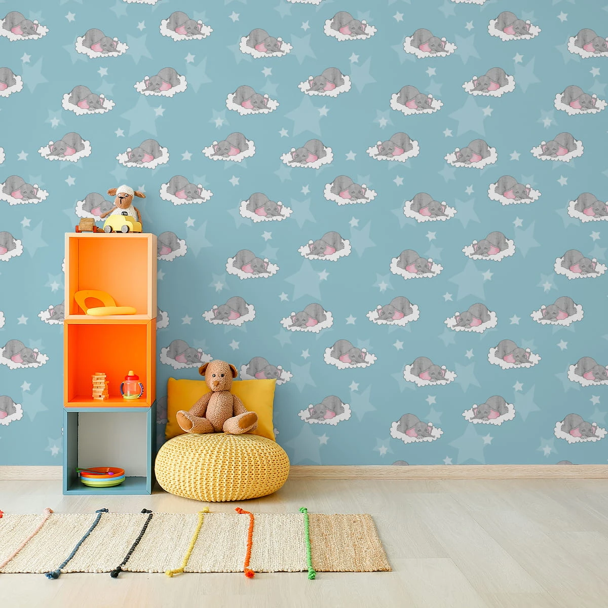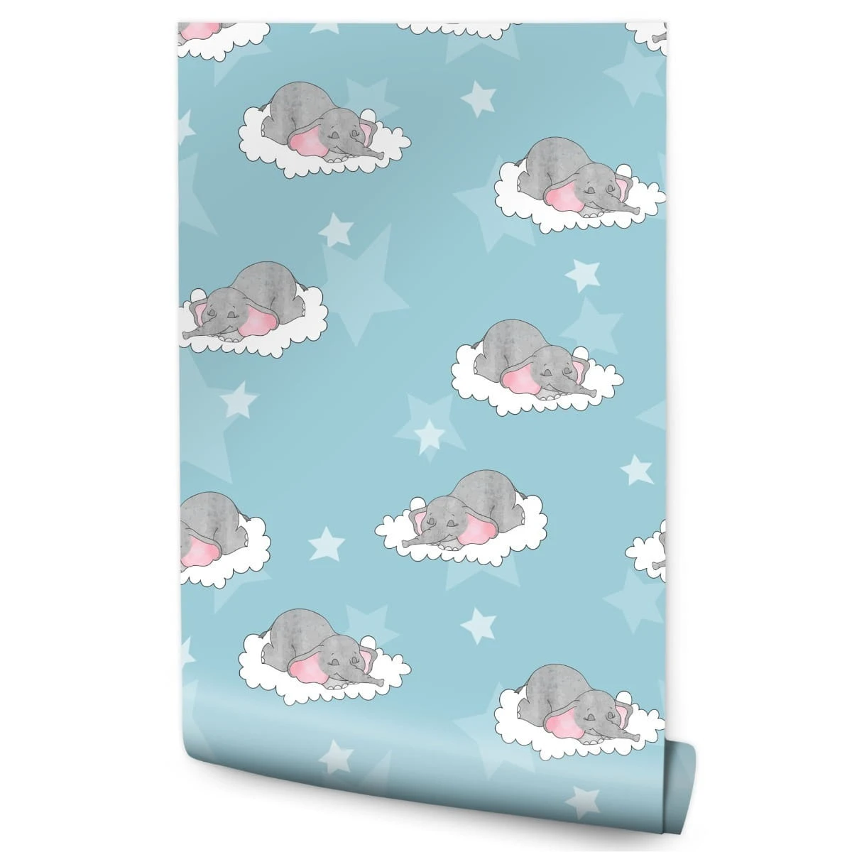 Tapeta Dla Dzieci-Śpiące Słoniki W Chmurach