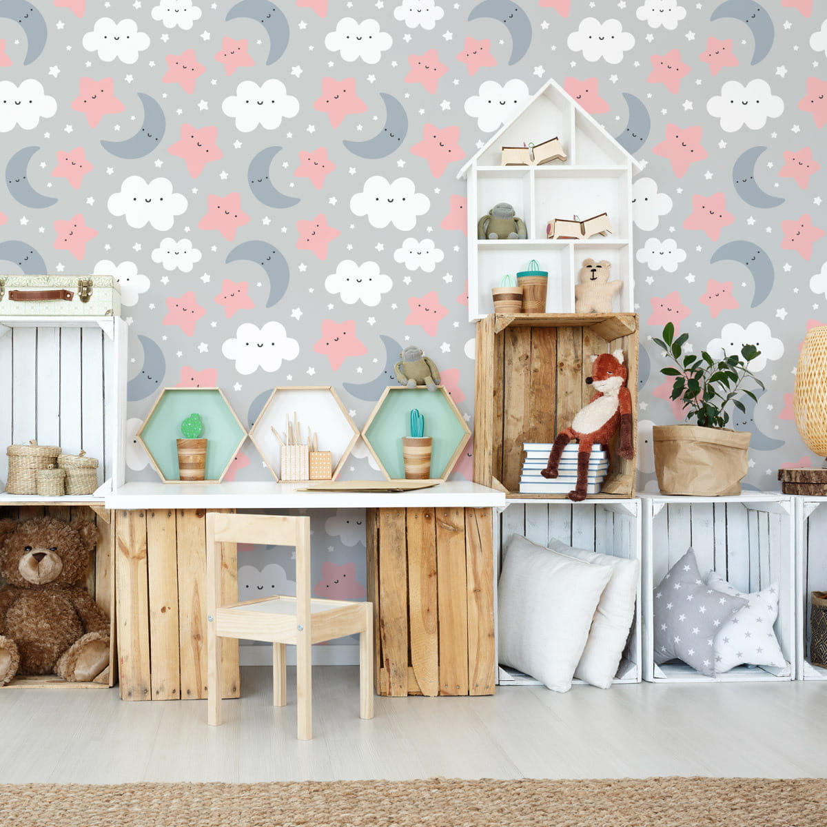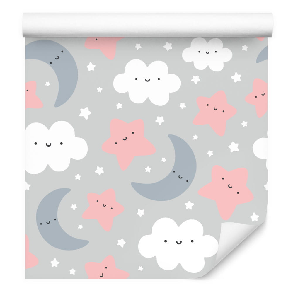 Tapeta Dla Dzieci – Uśmiechnięte Chmurki I Gwiazdki