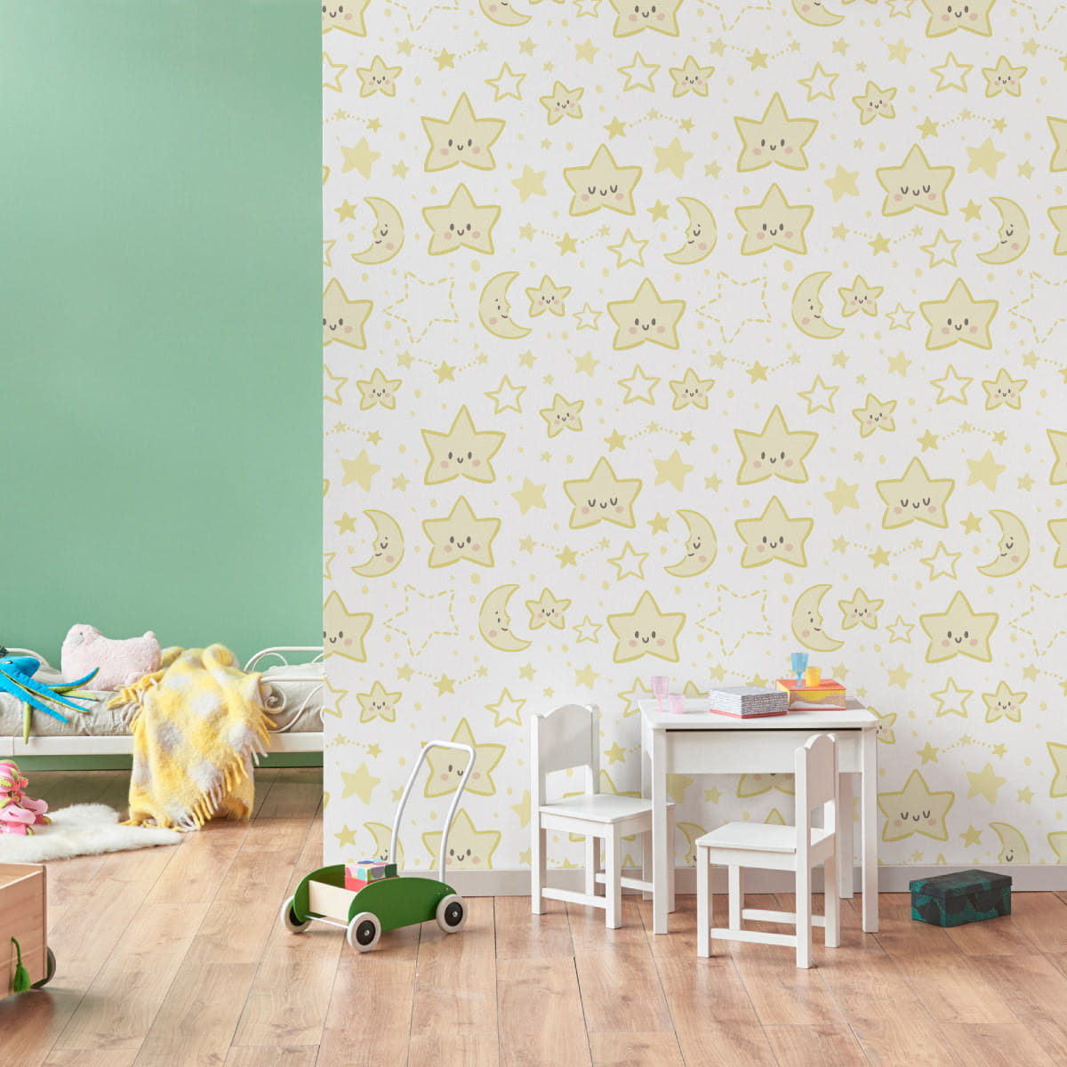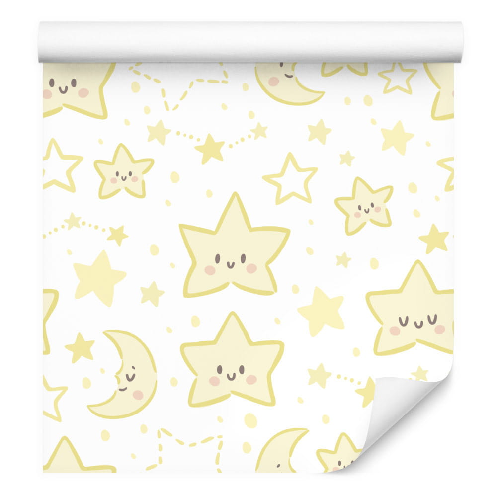 Tapeta Dla Dzieci – Uśmiechnięte Gwiazdki I Księżyce