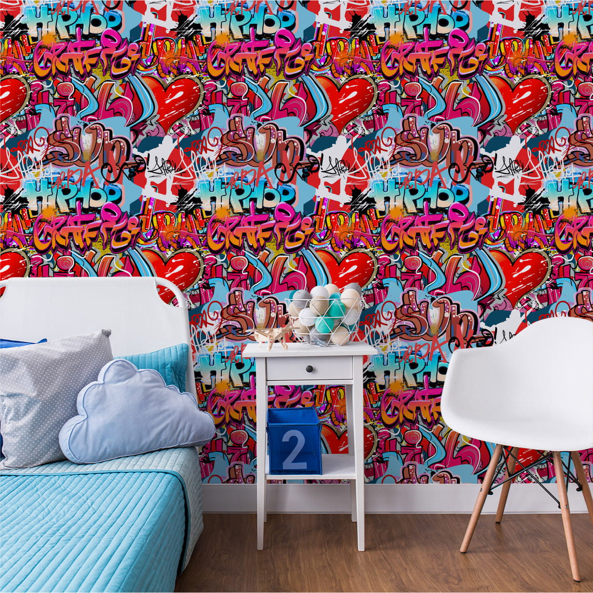 Tapeta Graffiti Z Odcieniami Czerwieni