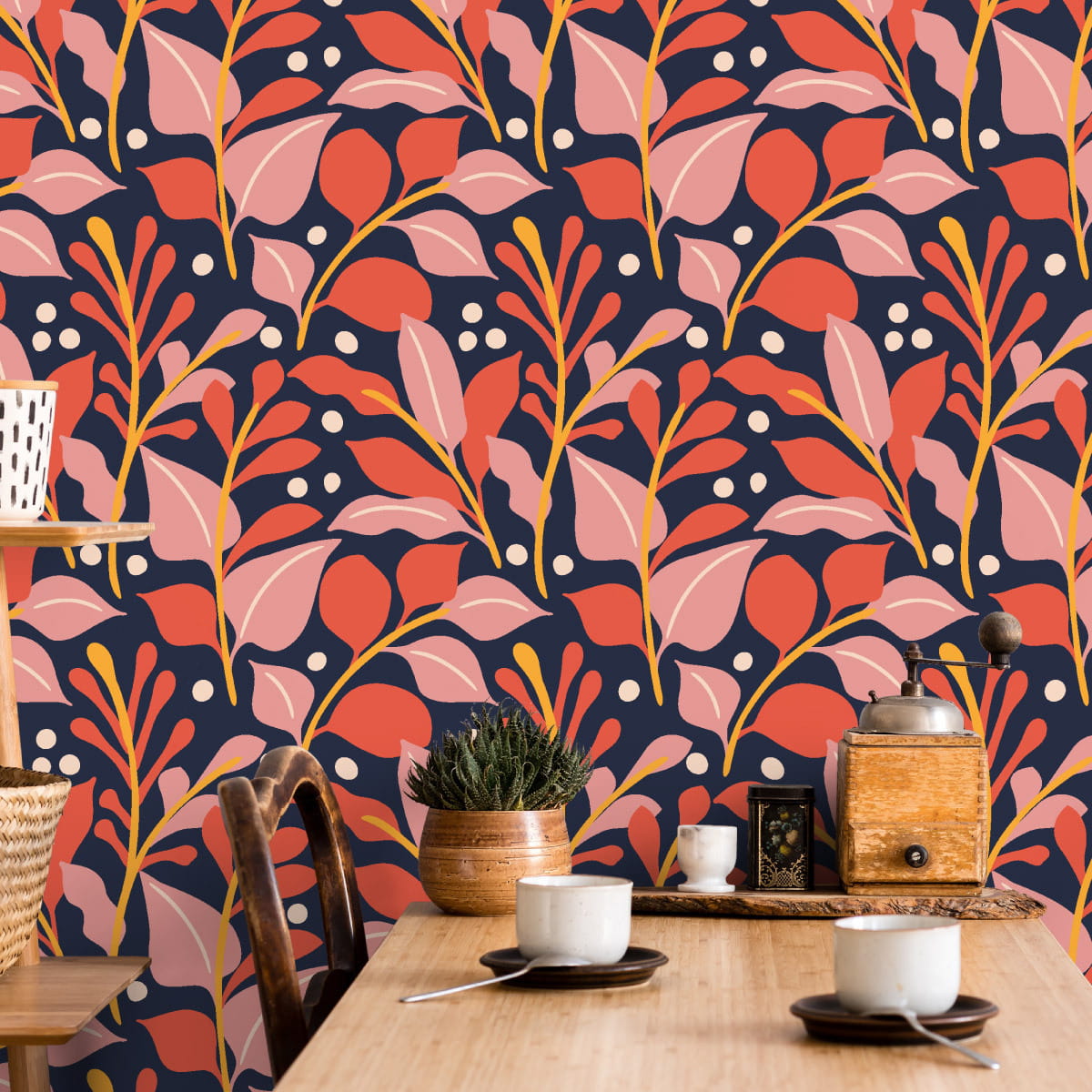 Tapeta Kolorowe Rośliny Styl Retro