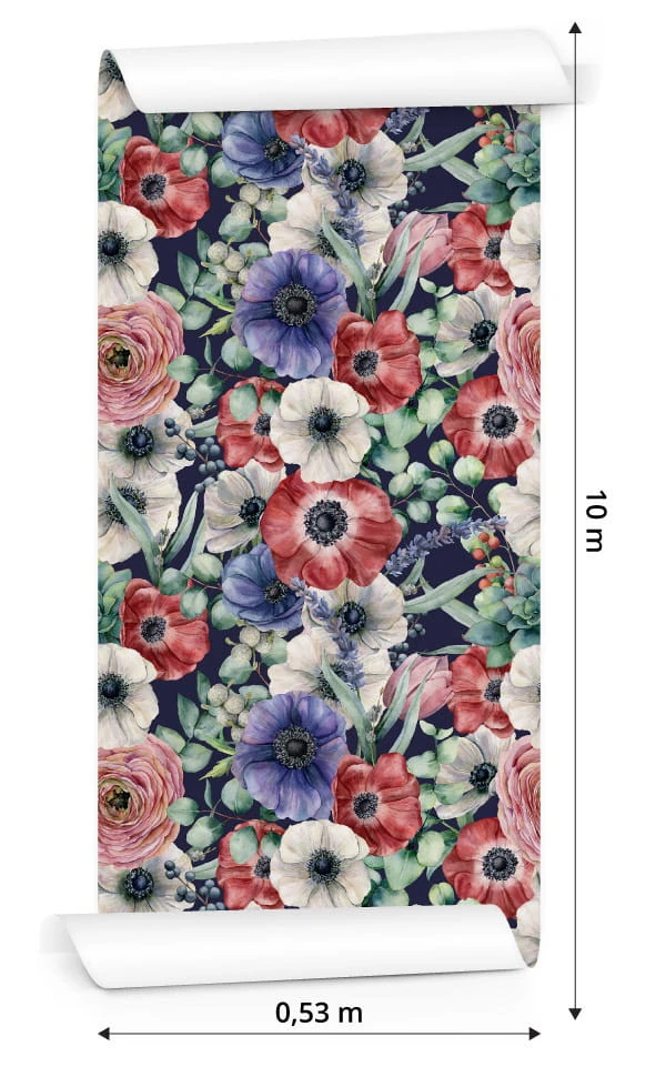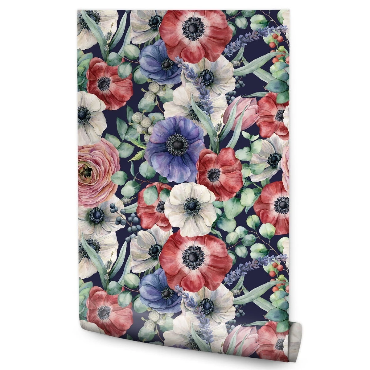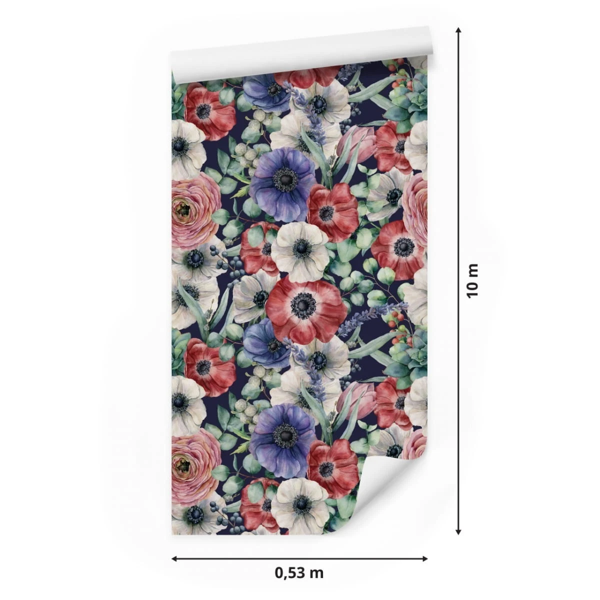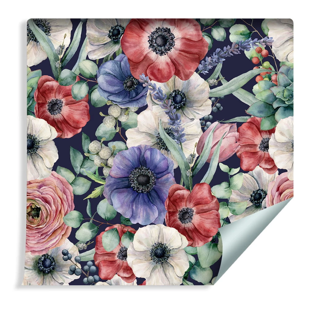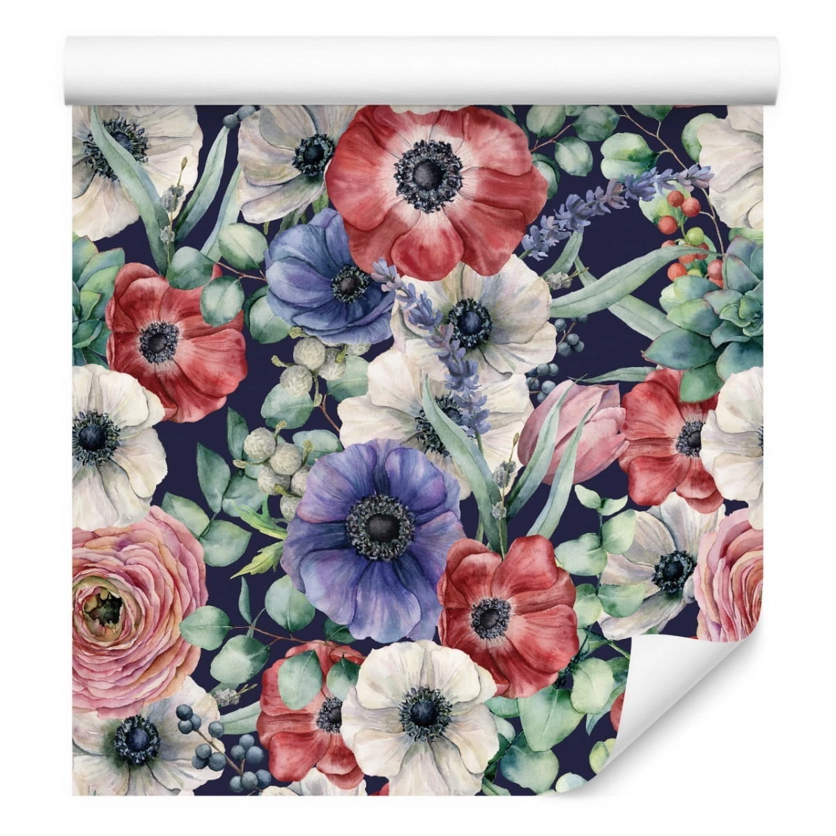 Tapeta Kolorowe Zawilce, Jaskry I Jagody Malowane Akwarelą