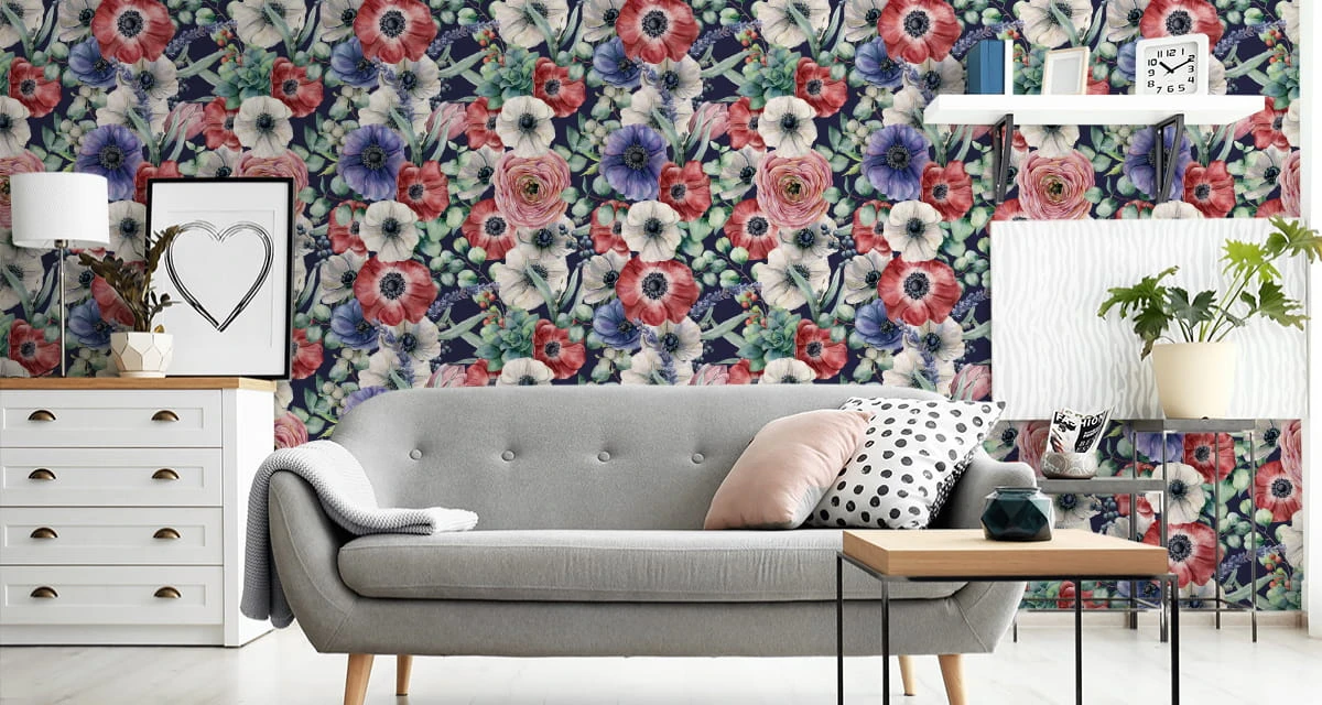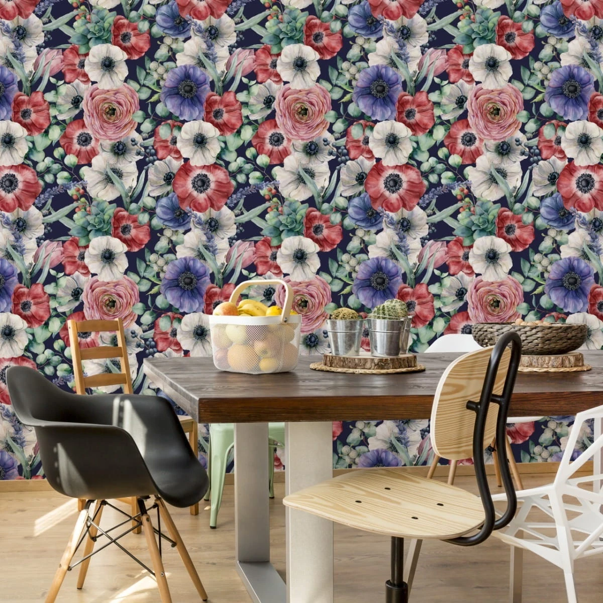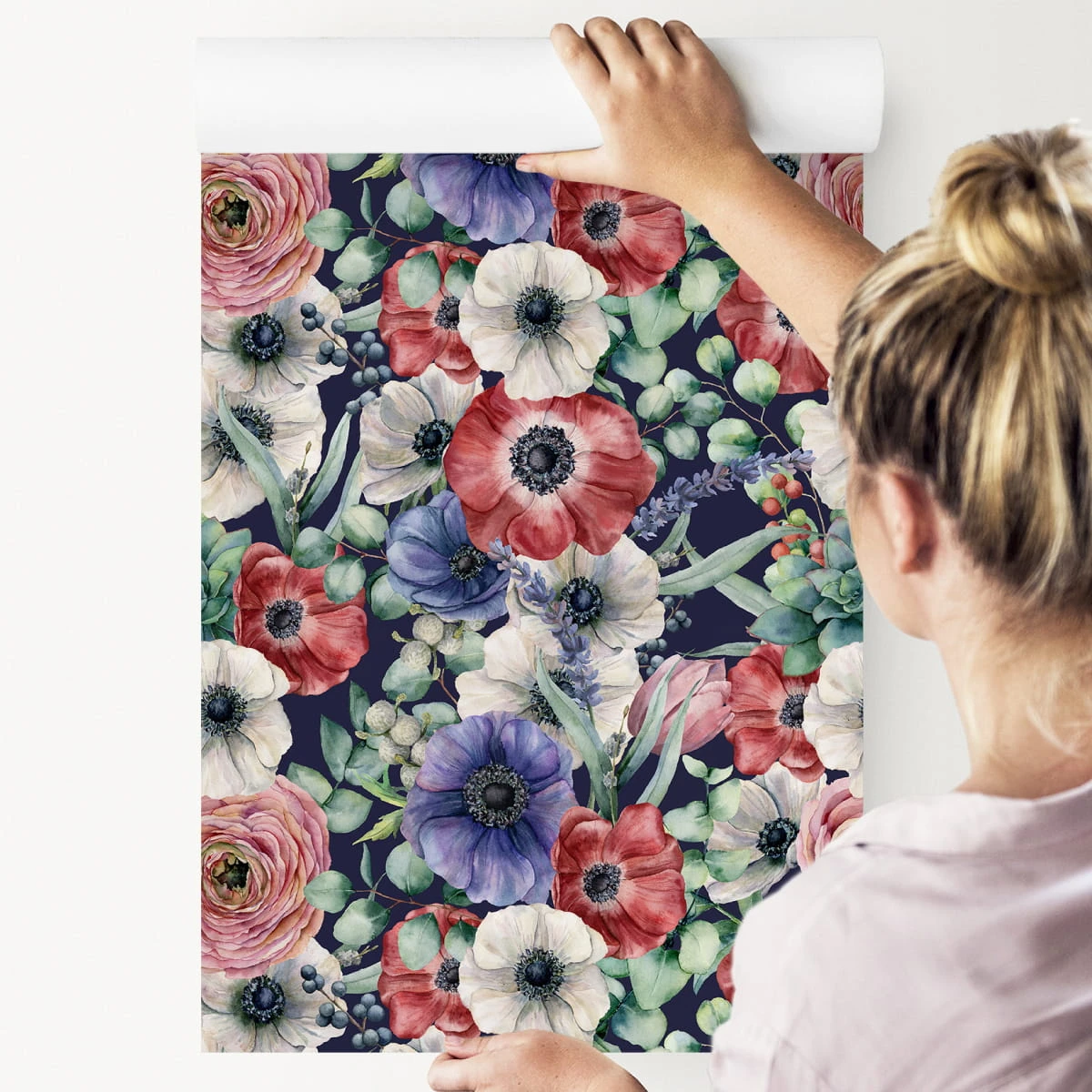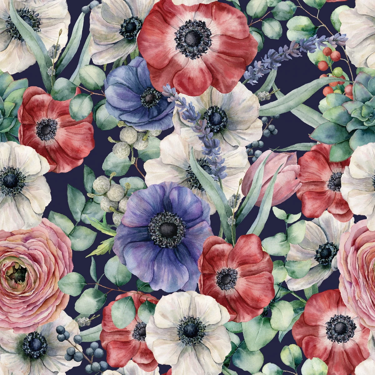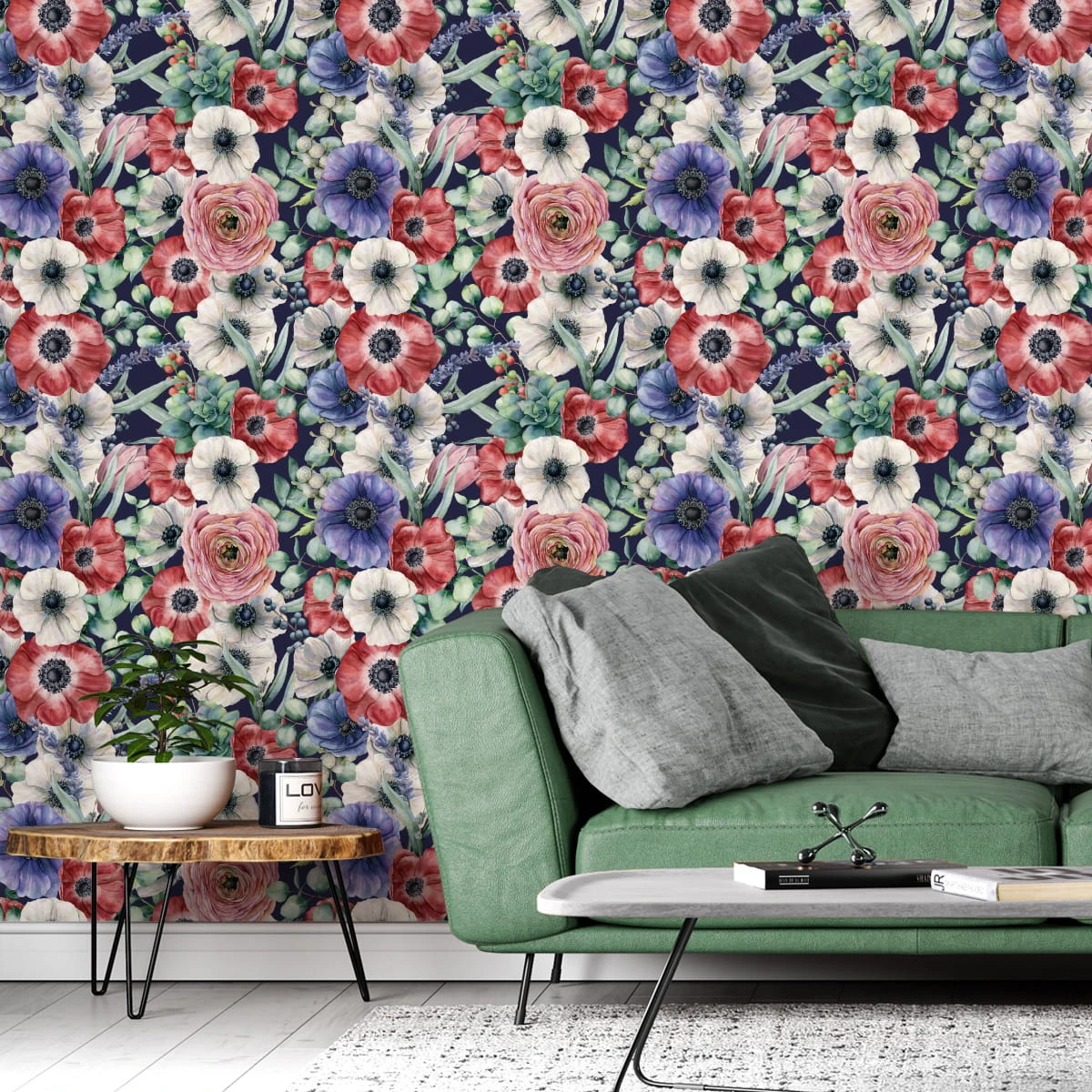 Tapeta Kolorowe Zawilce, Jaskry I Jagody Malowane Akwarelą