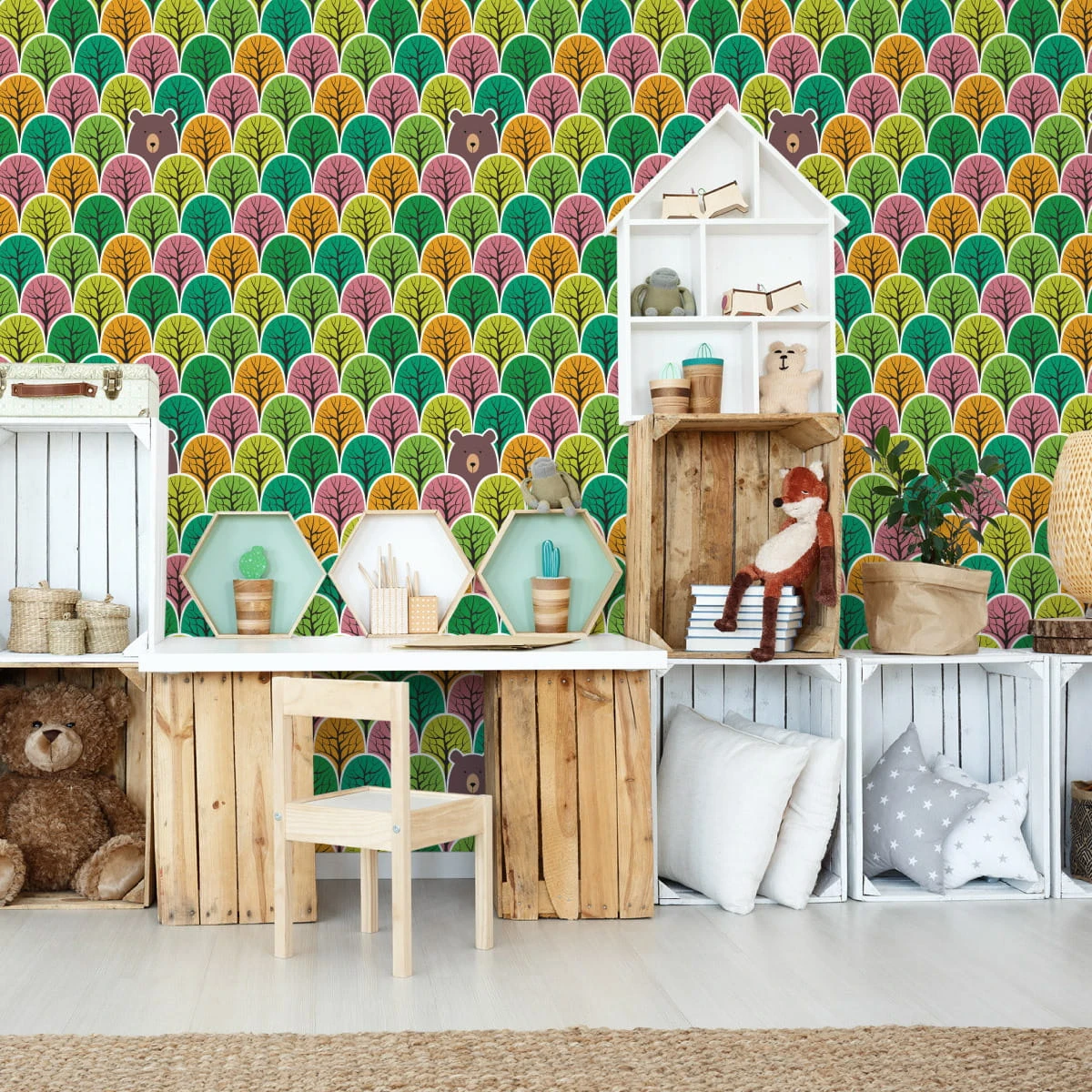 Tapeta Kolorowy Las, Drzewa Do Pokoju Dziecka
