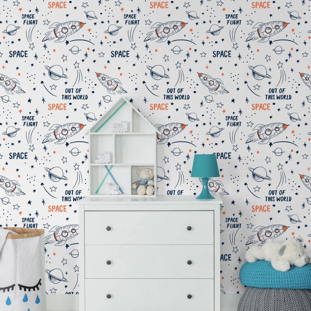 Tapeta Kosmos, Rakiety, Gwiazdy, Do Pokoju Dziecka