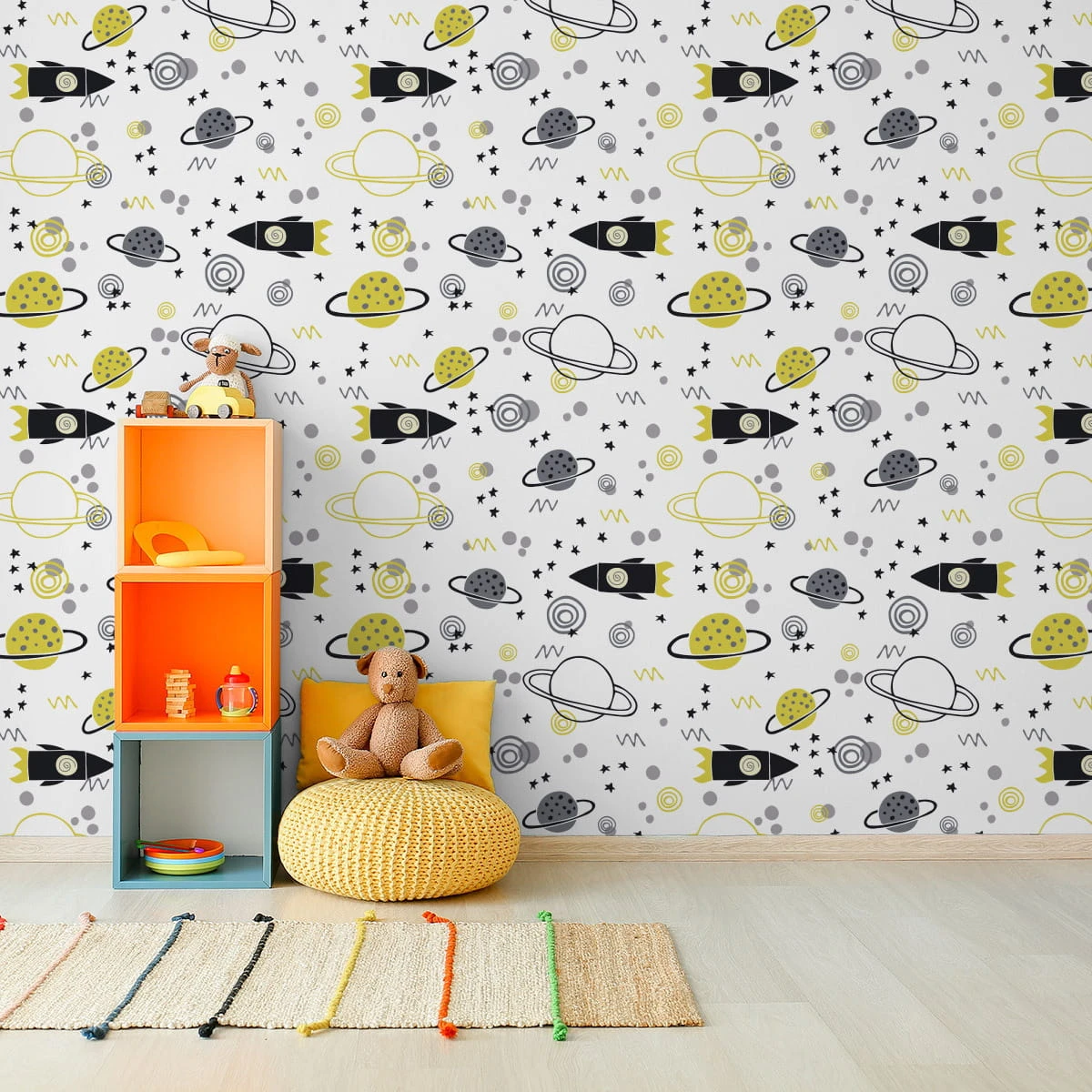 Tapeta Kosmos Rakiety Planety Do Pokoju Dziecka