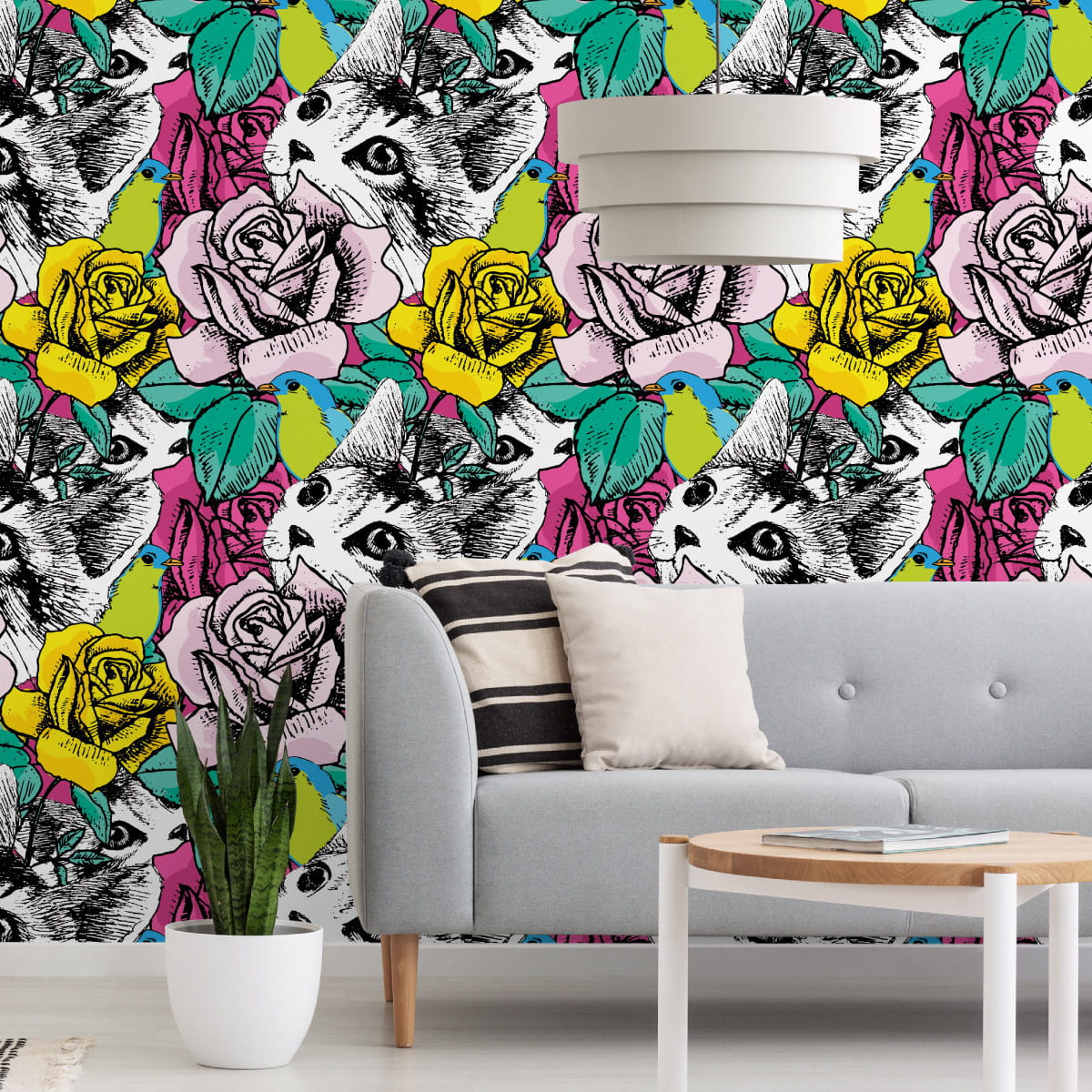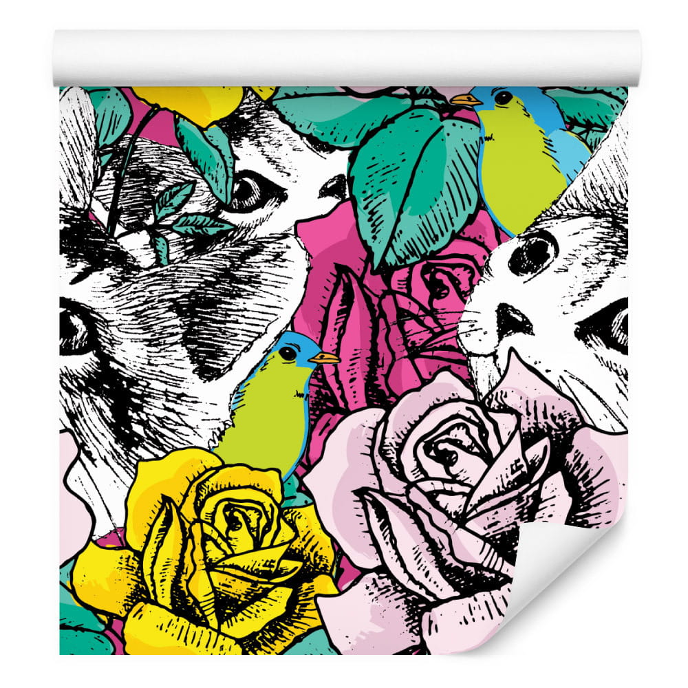 Tapeta – Koty, Ptaki I Róże