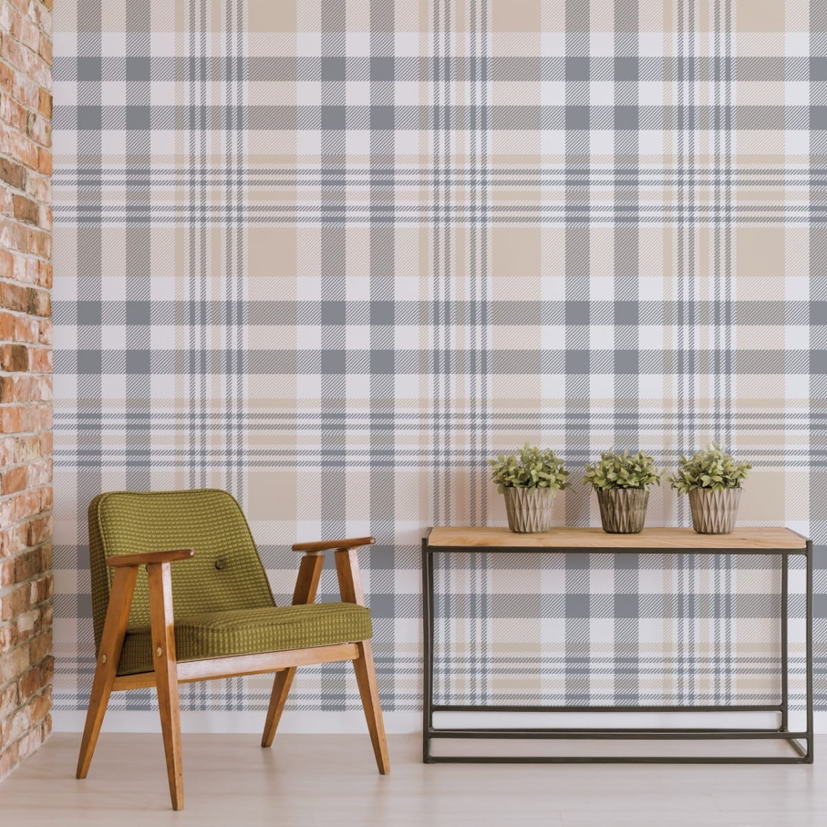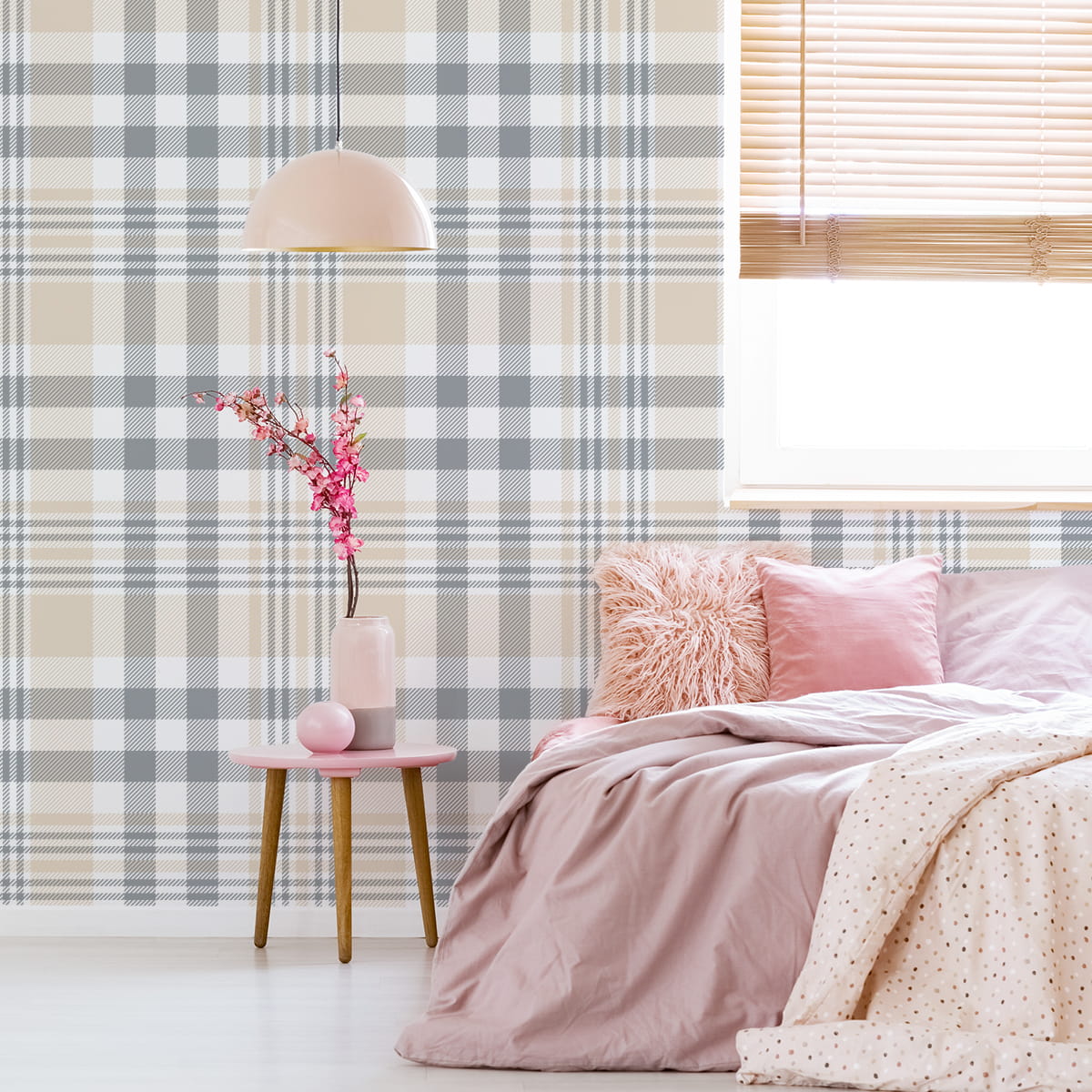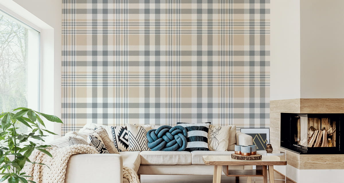 Tapeta Krata W Kolorze Szarym, Beżowym I Białym