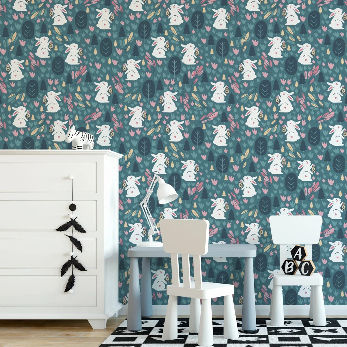 Tapeta Króliki Na Zielonym Tle