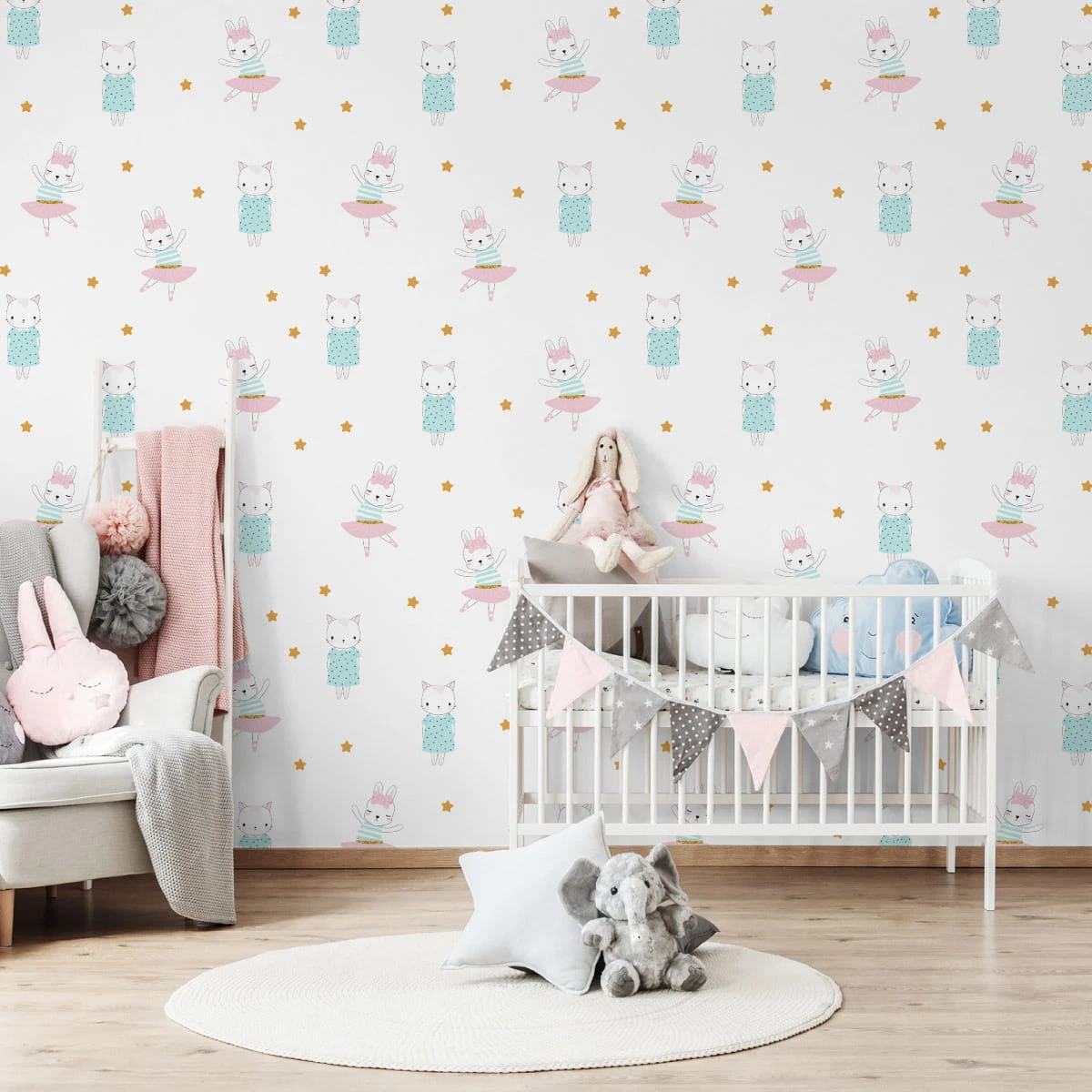 Tapeta Króliki Wśród Gwiazdek