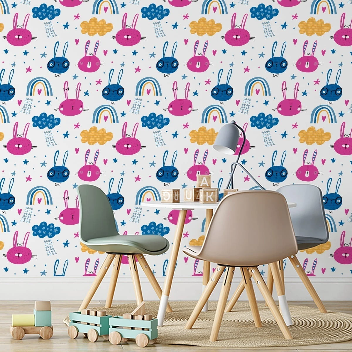 Tapeta Króliki Z Tęczą