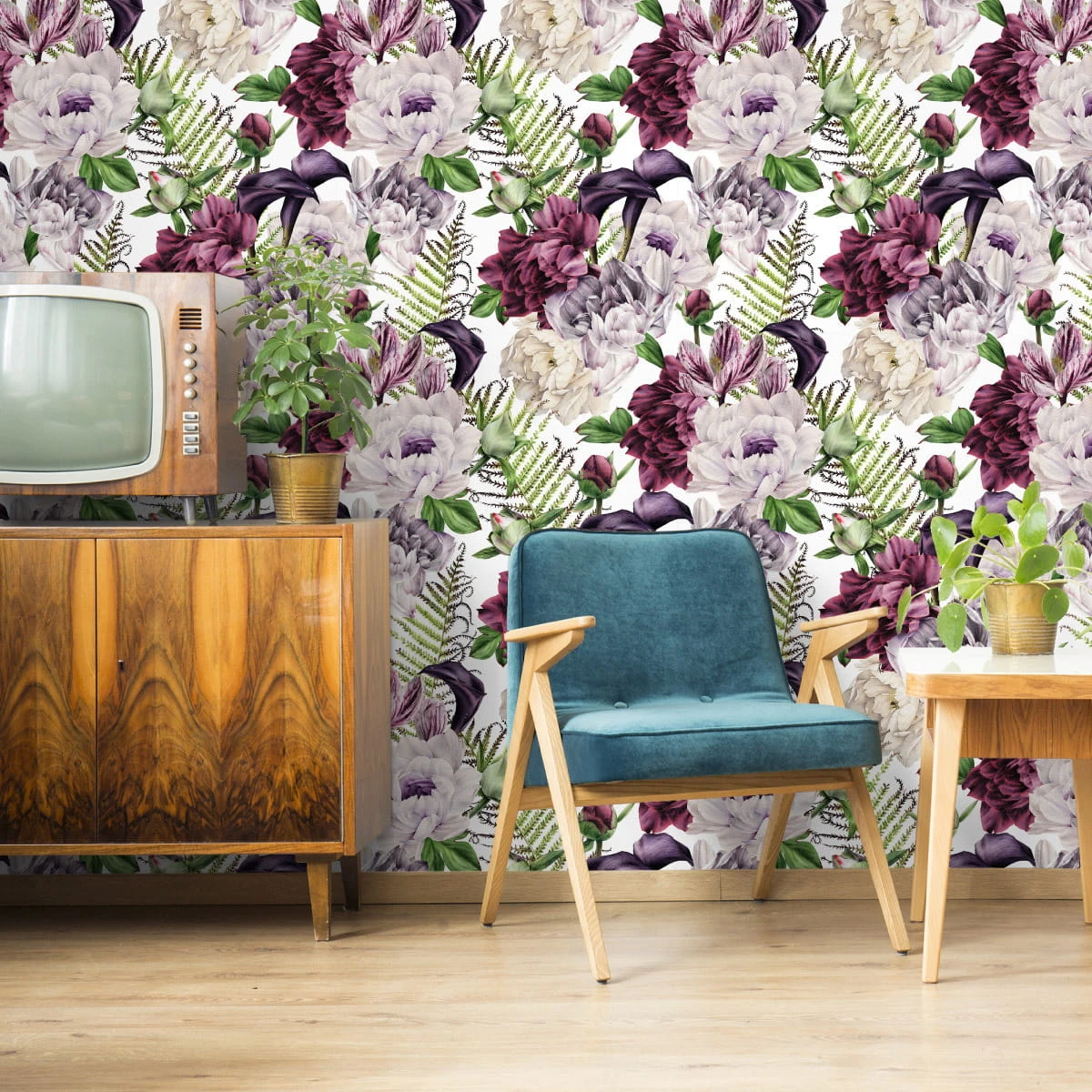 Tapeta Kwiatowy Wzór Piwonie Akwarela